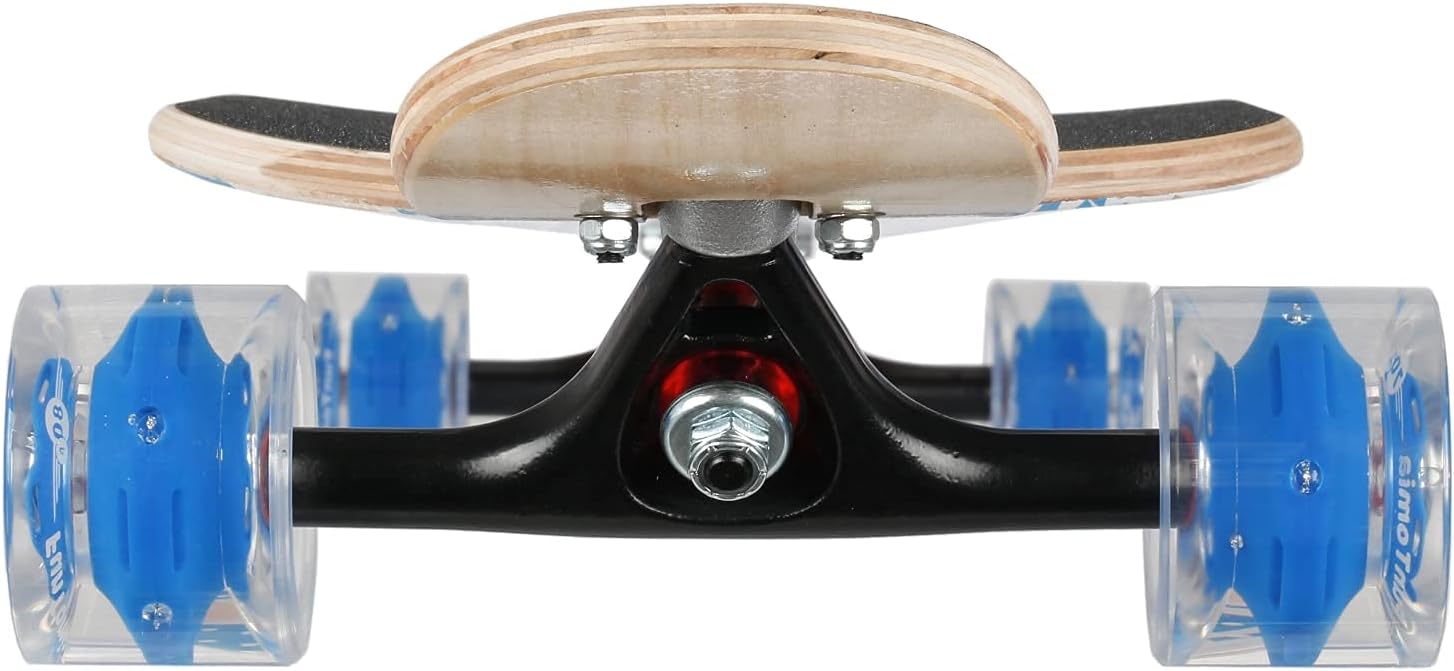- Die Aluminium Achsen überzeugen durch viel Kontrolle im Lenkverhalten. Dank der Rollen mit 80A Rollenhärte, hat das Board einen sehr leisen Lauf.
