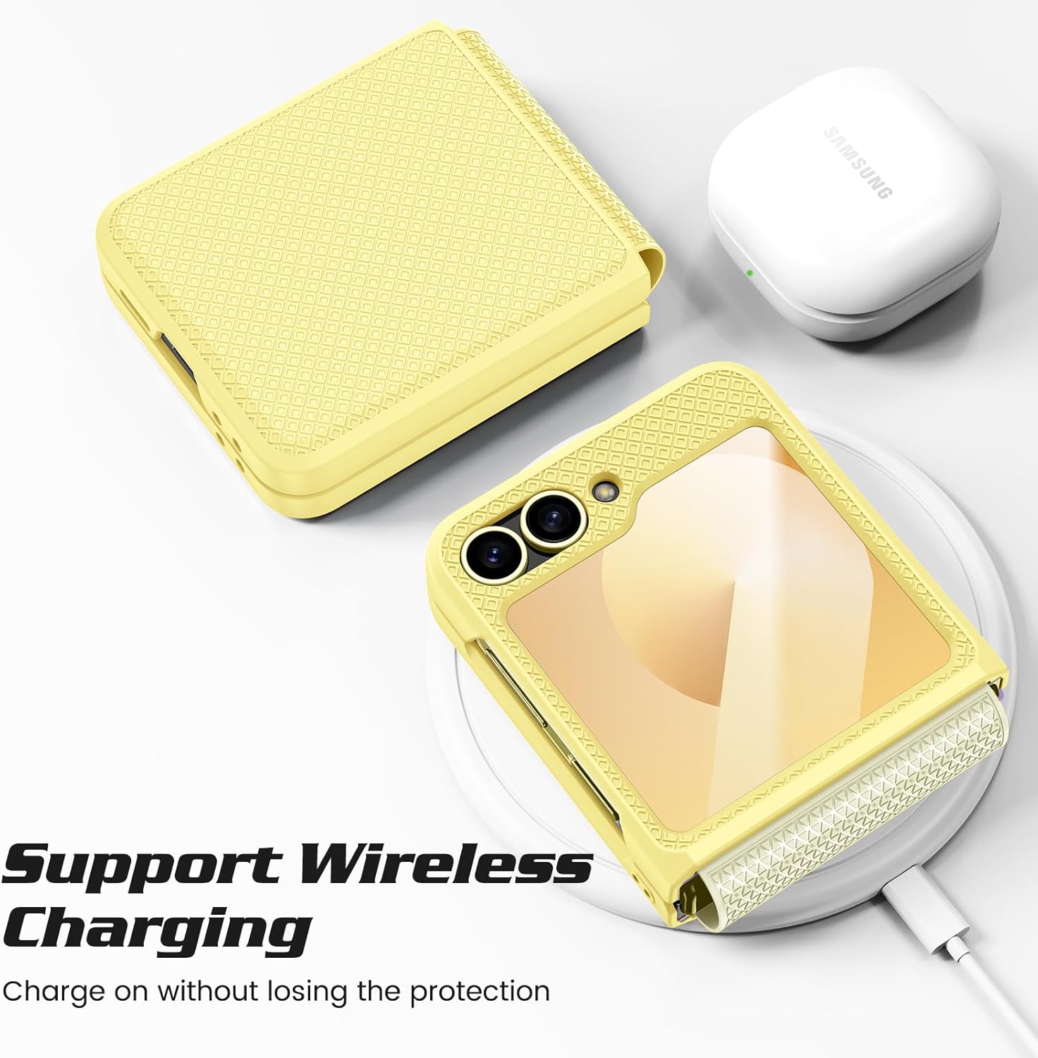 - [Unterstützt kabelloses Laden]: Entwickelt, um mit den meisten kabellosen Ladegeräten zu arbeiten, ohne Ihr Galaxy Z Flip 7 FE/Flip 6 Stossfeste Hülle abnehmen zu müssen. 【Hinweis: Drahtloses Ladegerät ist nicht im Lieferumfang enthalten】. Wenn