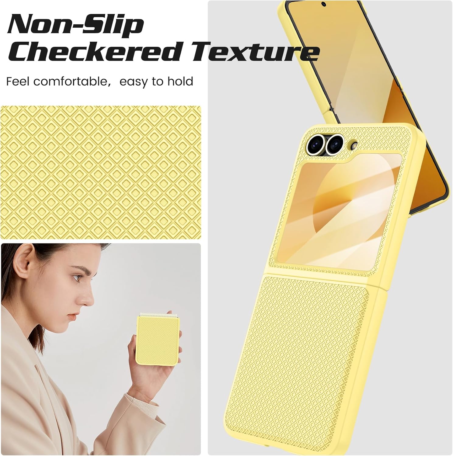 - [Karierte Anti-Rutsch Textur Design]: Die Rückseite der Z Flip 7 FE/Flip 6 Handyhülle verwendet eine quadratische rutschfeste Textur und eine bequeme Beschichtung, die es angenehm zu berühren und leicht zu halten macht. Die rutschfeste Textur der