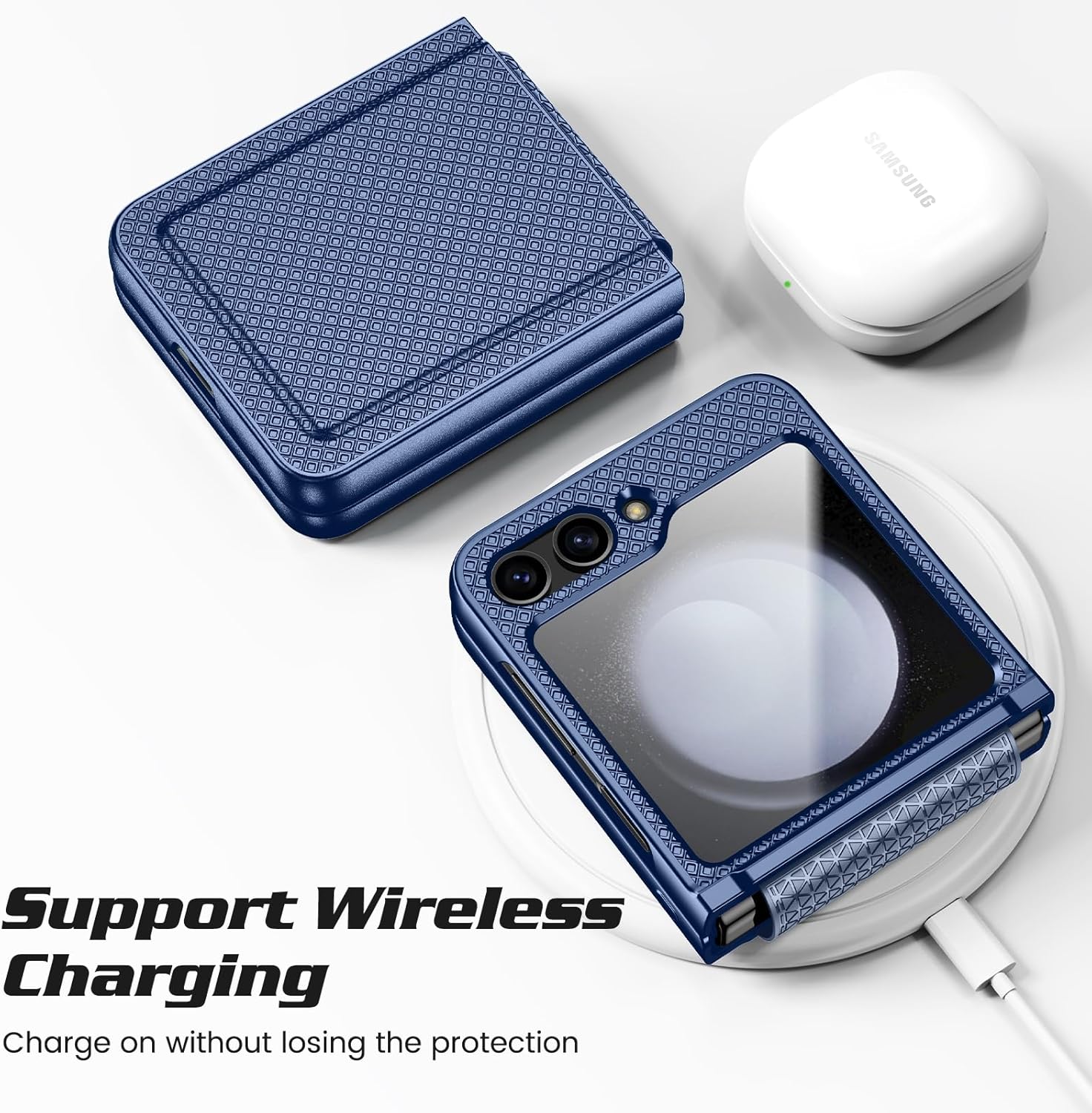 - [Unterstützt kabelloses Laden]: Entwickelt, um mit den meisten kabellosen Ladegeräten zu arbeiten, ohne Ihr Galaxy Z Flip 5 Stossfeste Hülle abnehmen zu müssen. 【Hinweis: Drahtloses Ladegerät ist nicht im Lieferumfang enthalten】. Wenn Sie