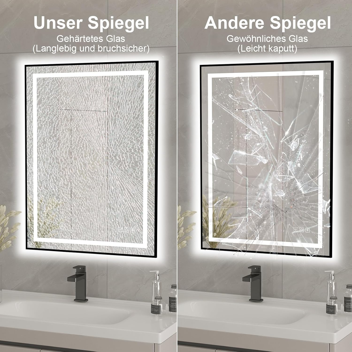- ✤[Beschlagfrei, wasserdicht und bruchsicher] Unser Schminkspiegel besteht aus 5 mm dickem gehärtetem Glas, das eine umweltfreundliche Spiegelhaltbarkeit und Korrosionsbeständigkeit bietet. Durch kurzes Drücken wird die Antibeschlagfunktion