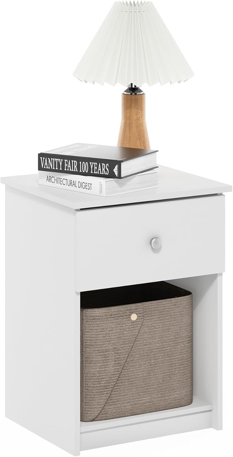 FURINNO Lucca Nachttisch, Weiss, 1 Stück Weiss 1-Pack, Weiss 1-Pack