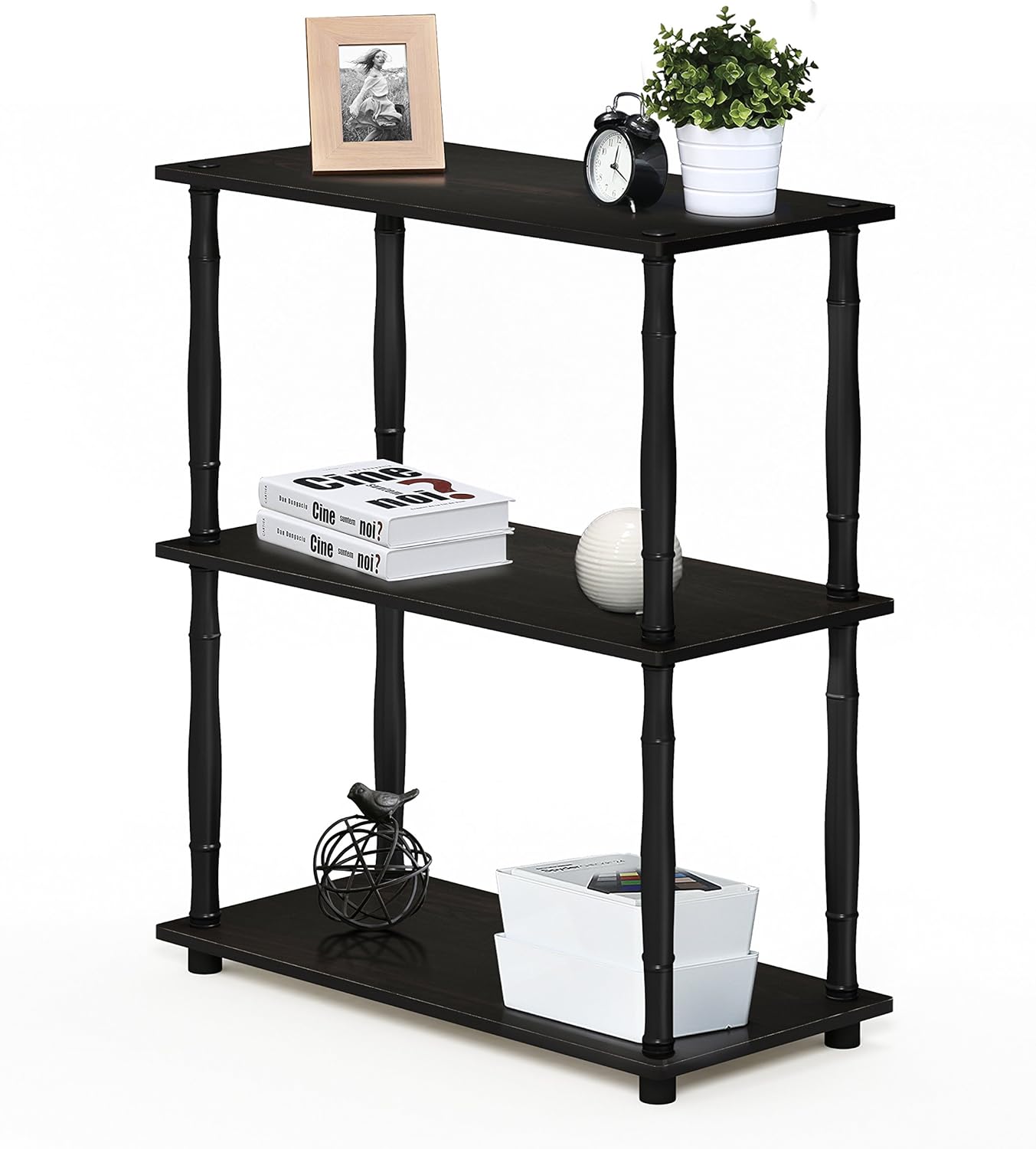 Furinno kompaktes Mehrzweck-Regal mit 3 Ebenen, holz, Espresso/Schwarz, 29.46 x 59.94 x 75.18 cm Esp