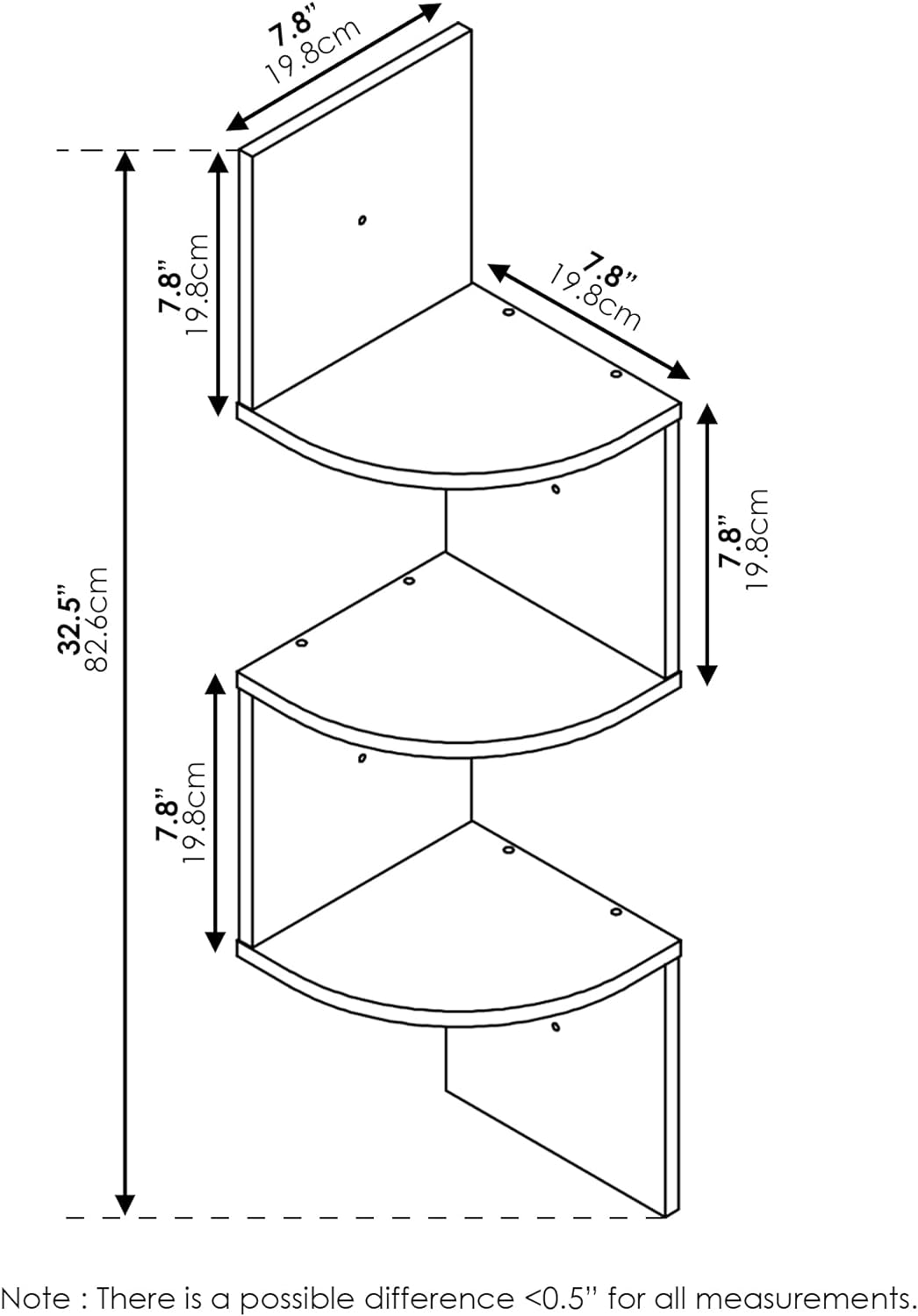 - Einfache Montage an der Wand. Die Gewichtskapazität beträgt 3 Pfund pro Regal.