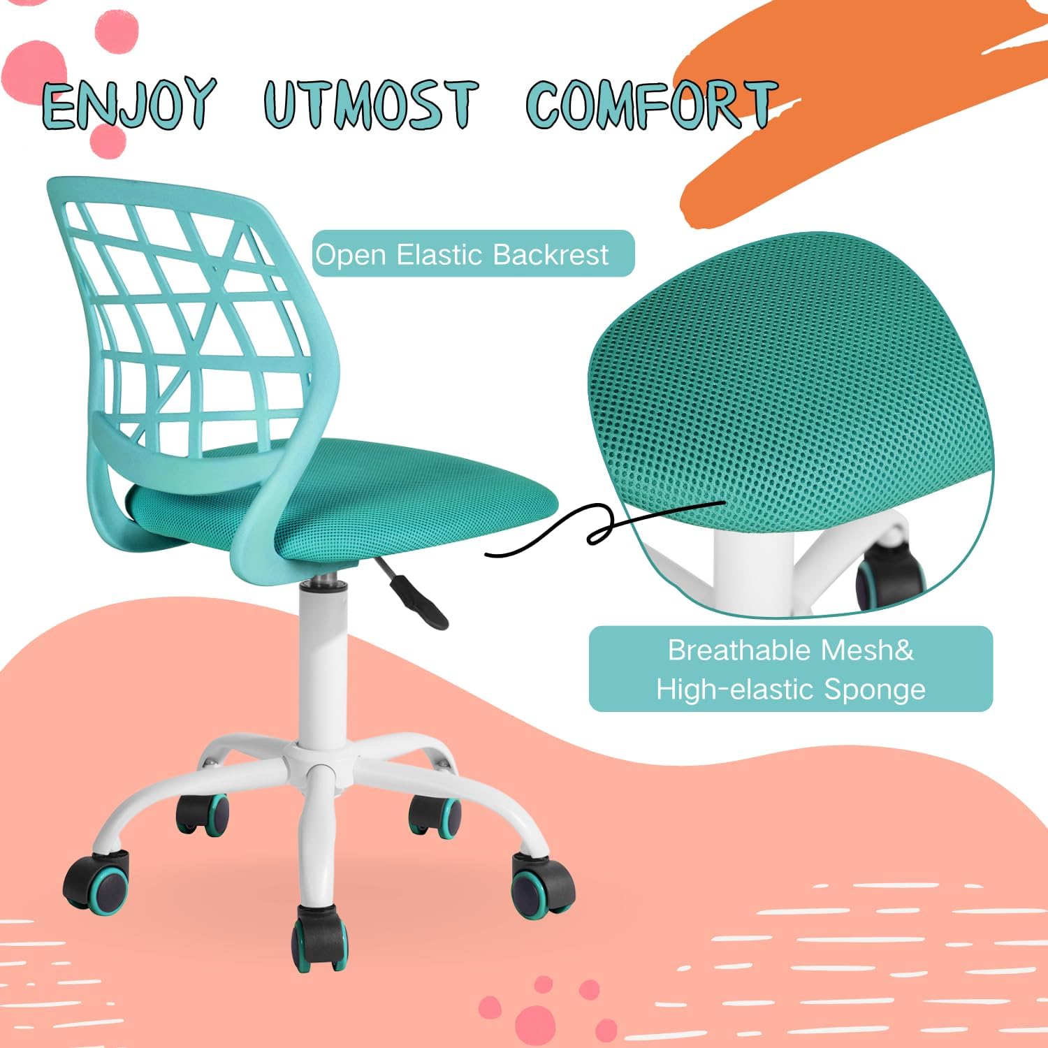 - Bis zu 5 Farben erhältlich: Blau, Lila, Rosa, Rosa, Türkis, verschiedene Farben bringen lebendige Farben in den Raum. Der Bürostuhl funktioniert gut im Büro, Arbeitszimmer und Schlafzimmer, ideal für Erwachsene und Kinder beim Arbeiten, Spielen,