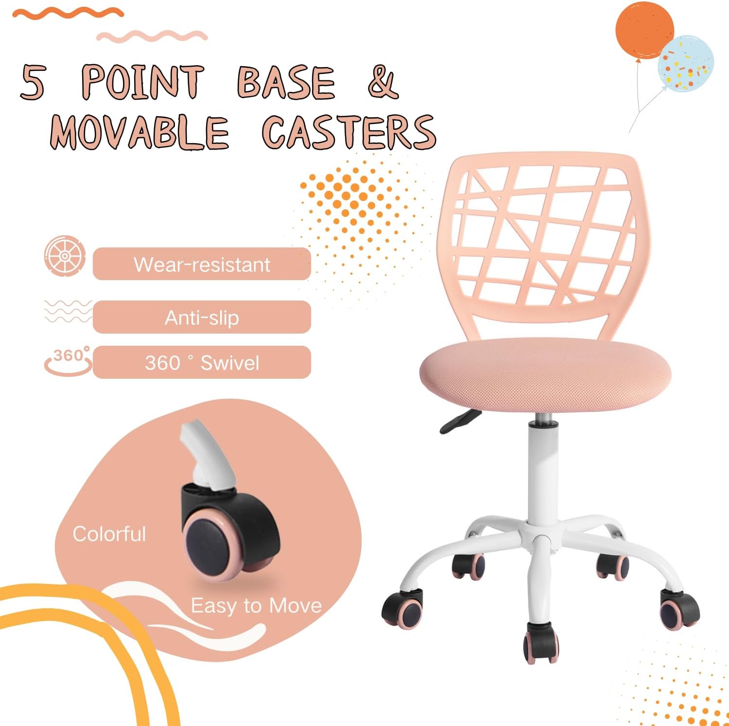 - Bis zu 5 Farben erhältlich: Blau, Lila, Rosa, Rosa, Türkis, verschiedene Farben bringen lebendige Farben in den Raum. Der Bürostuhl funktioniert gut im Büro, Arbeitszimmer und Schlafzimmer, ideal für Erwachsene und Kinder beim Arbeiten, Spielen,