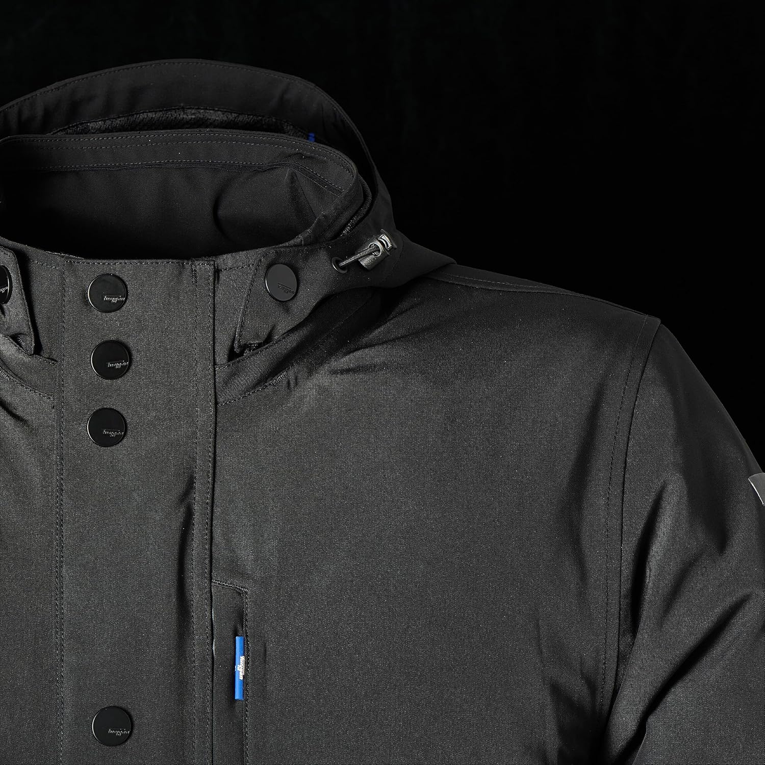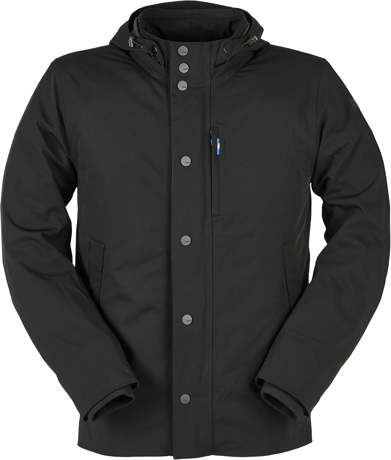 PRODUKTBESCHREIBUNGEN Gehen Sie mit dem Modell Loki die Mobilität in der Stadt in neuem Licht an. Optimiertes Gewicht, winddichtes, laminiertes Material, wasserdicht und atmungsaktiv: Die Jacke orientiert sich an den grossen High-tech-Produkten des Outdoor-Sports. Doch durch ihre motorradspezifische technologische Ausstattung, wie das Thermo-Vollfutter oder die D3O-Protektoren, ist sie jeden Tag und bei jedem Wetter Ihr zuverlässiger Begleiter durch den Grossstadtdschungel auf der Maschine. - Konzipiert aus einem Ultra-High-tech-Laminat, PFC-frei. Das Resultat: extrem wasserdicht und komfortabel, was diese Motorradjacke zum echten Sportswear-Produkt macht, aber noch verbessert für das Motorradfahren im Grossstadtdschungel. - Die Kapuze kann am Rücken befestigt werden, damit sie beim Fahren nicht flattert. Mehr