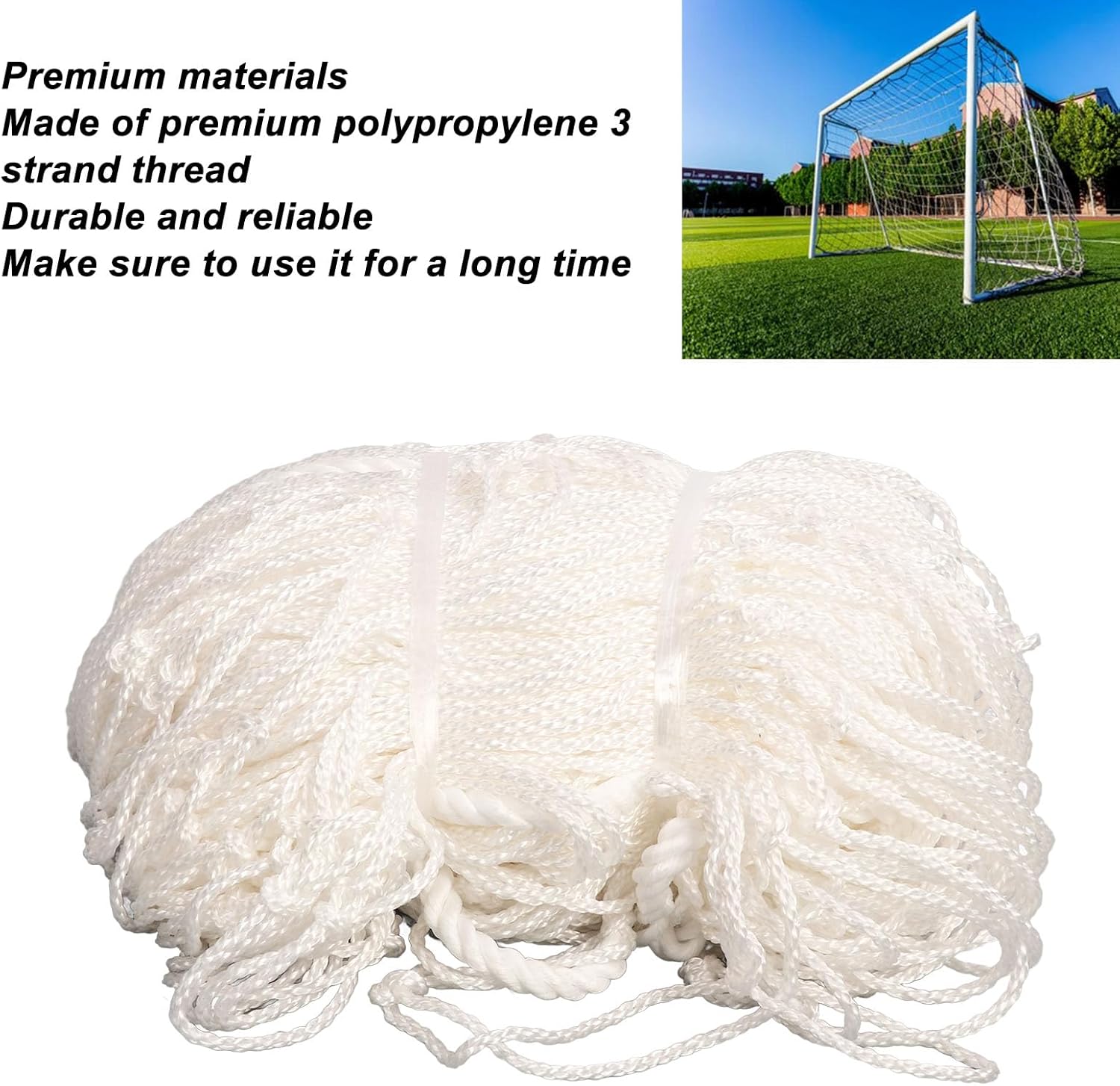 - Polypropylenmaterial: Der Ersatz des Fussballnetz besteht aus Polypropylenmaterial 3 Strängen, langlebig und zuverlässig, um langfristige Verwendung zu gewährleisten