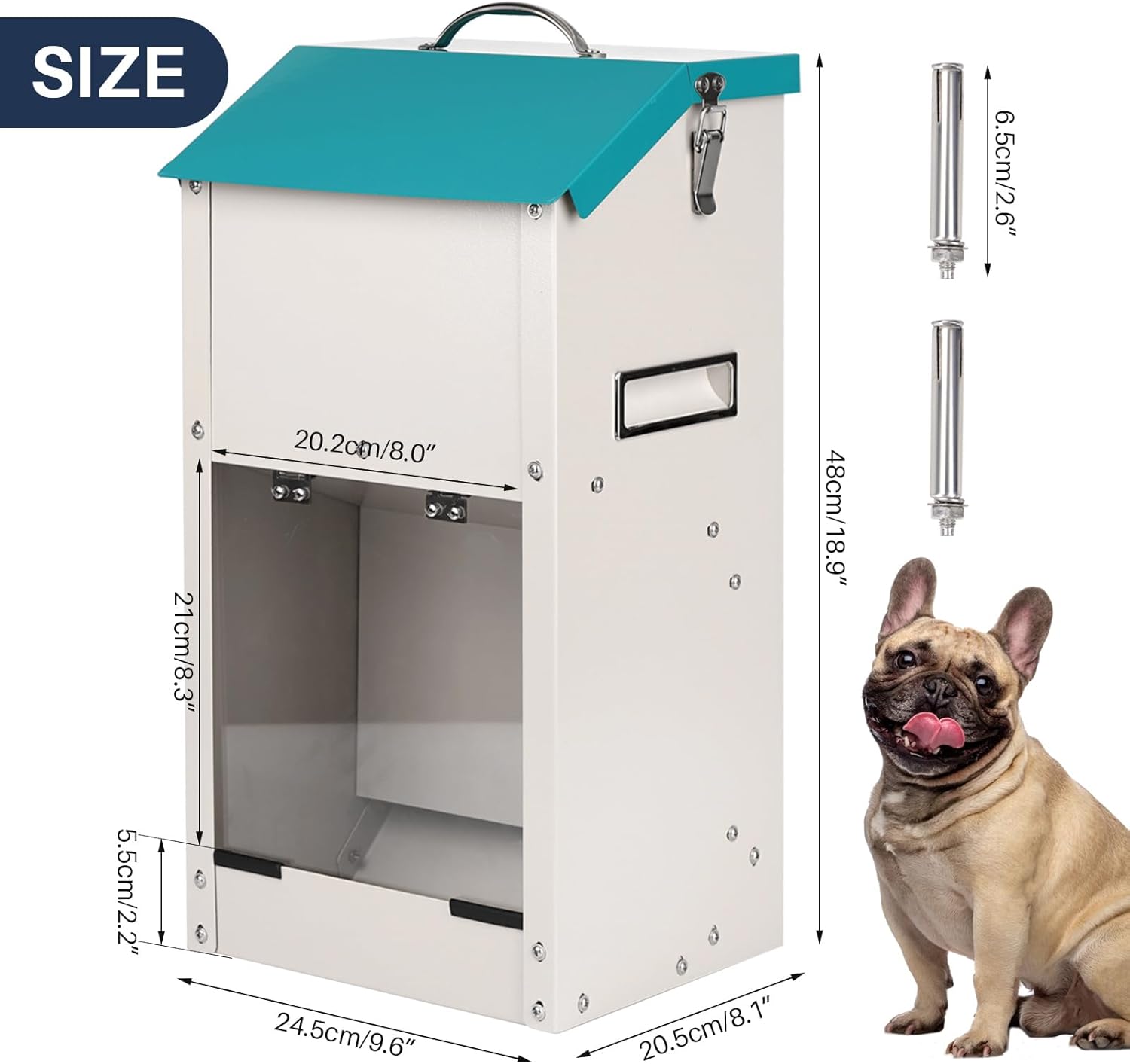 - 🐾NAGETIER- UND VOGELSICHER: Die obere Abdeckung schützt die Lebensmittel vor Nagetieren und Vögeln. Das wasserdichte Design schützt das Futter vor Regen. Die durchsichtige Acrylplatte zeigt Ihrem Hund, wo sich das Futter befindet, und bietet eine