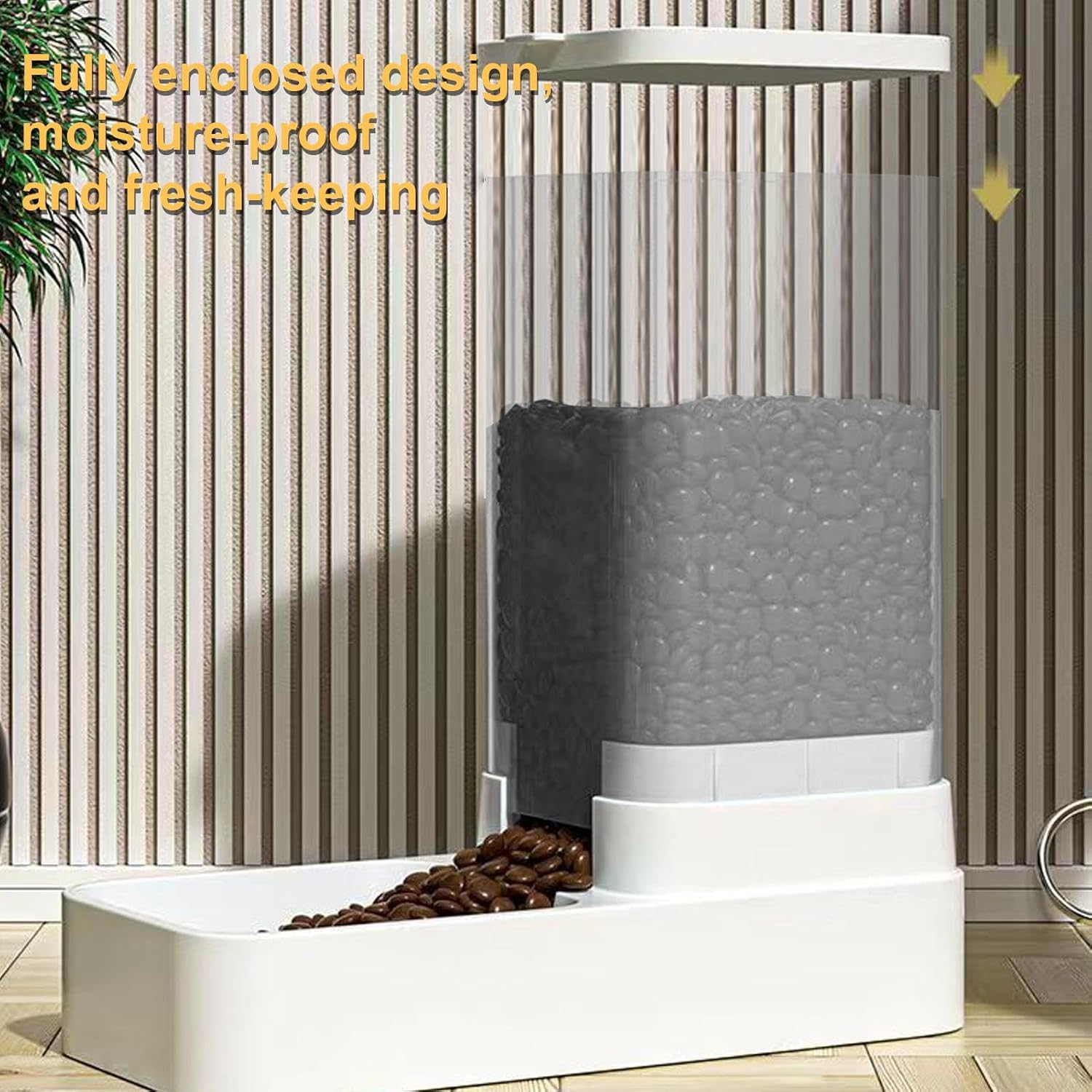 - ➚Automatisches Design: Mit diesem automatischen Katzenfutterautomat können Sie Ihren pelzigen Freund jederzeit und überall füttern, ohne sich Gedanken über das häufige Hinzufügen von Futter machen zu müssen. Das 18-Schwerkraftneigungsdesign