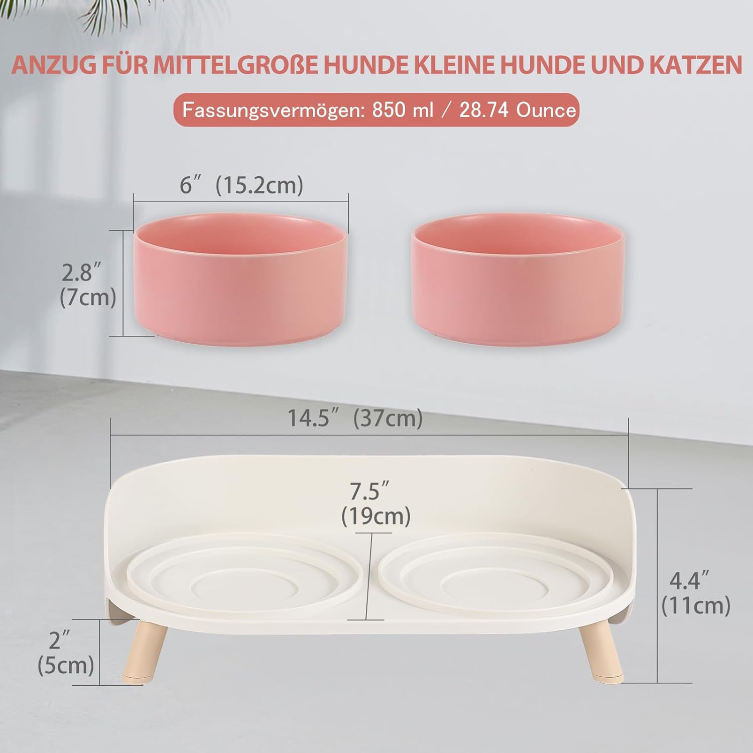 Futternapf Hund Keramik Hundenapf Erhöht - Spritzsicherer Hundenäpfe mit Ständer - Doppel Napf Katze