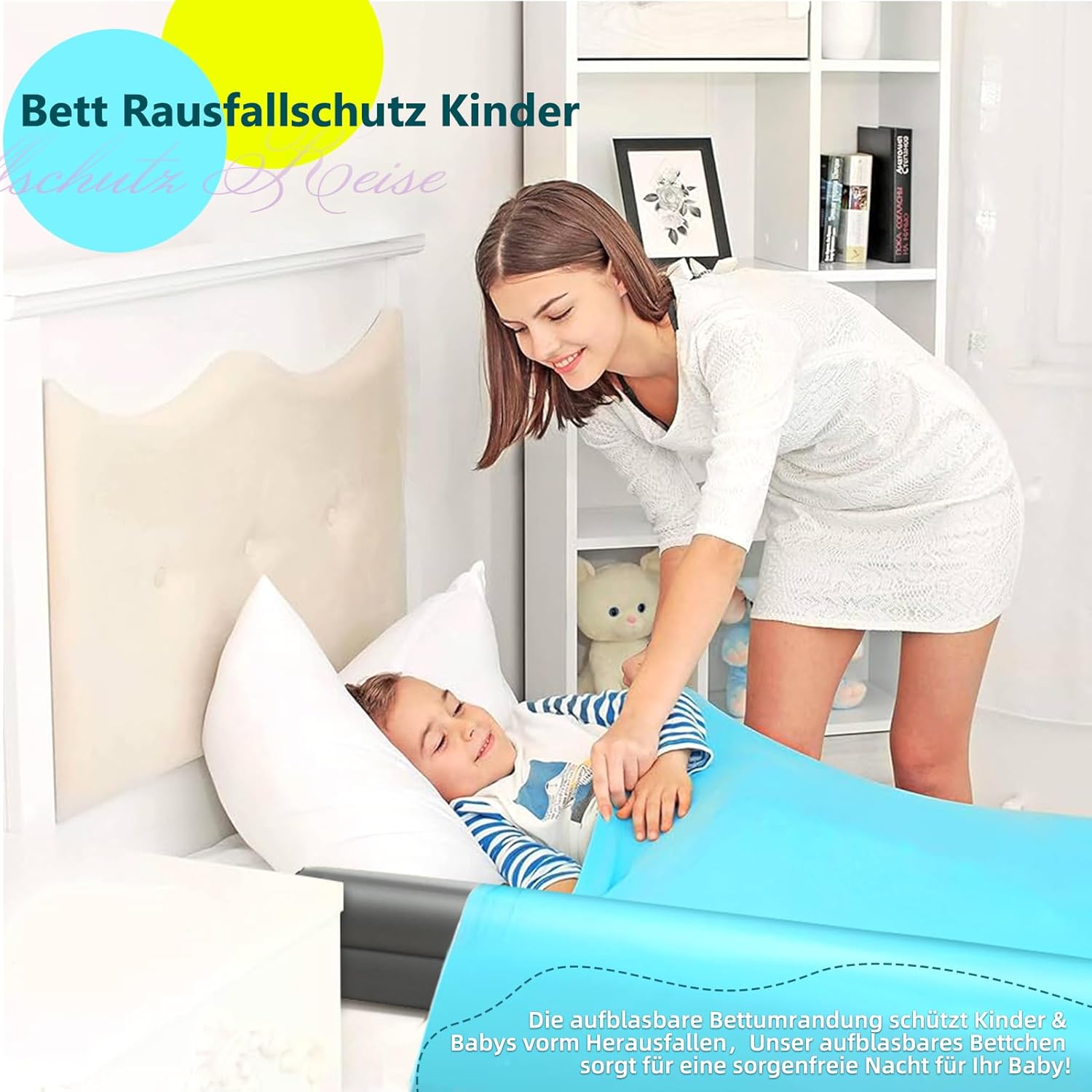 - Praktisch - Aufblasbarer Rausfallschutz Kinder Bett reise der geringen Grösse, des geringen Gewichts und der praktischen Baumwolltasche ist der Bettgitterschutz der ideale Begleiter auf Reisen oder bei Freunden und Familie. Unser Aufblasbarer