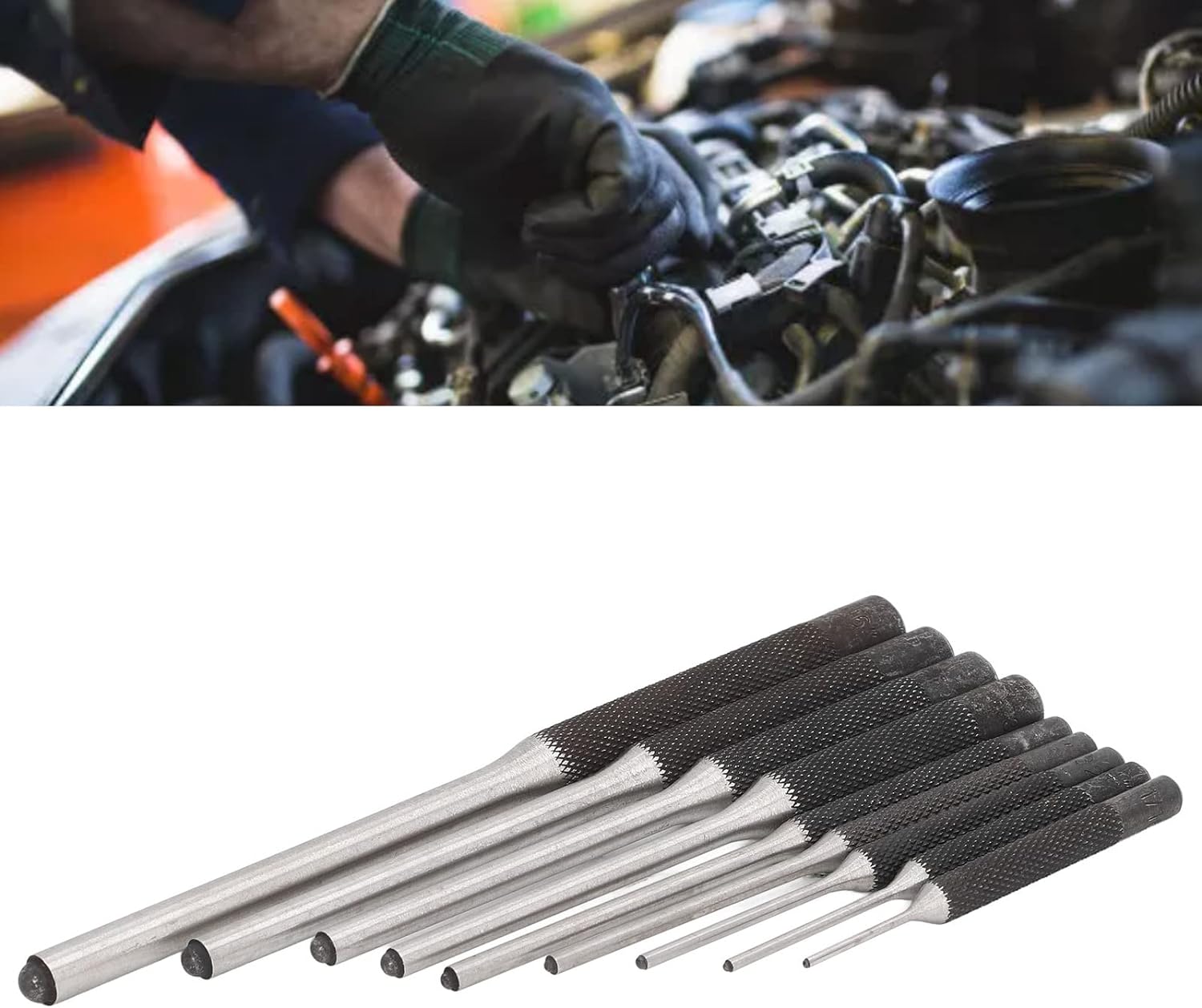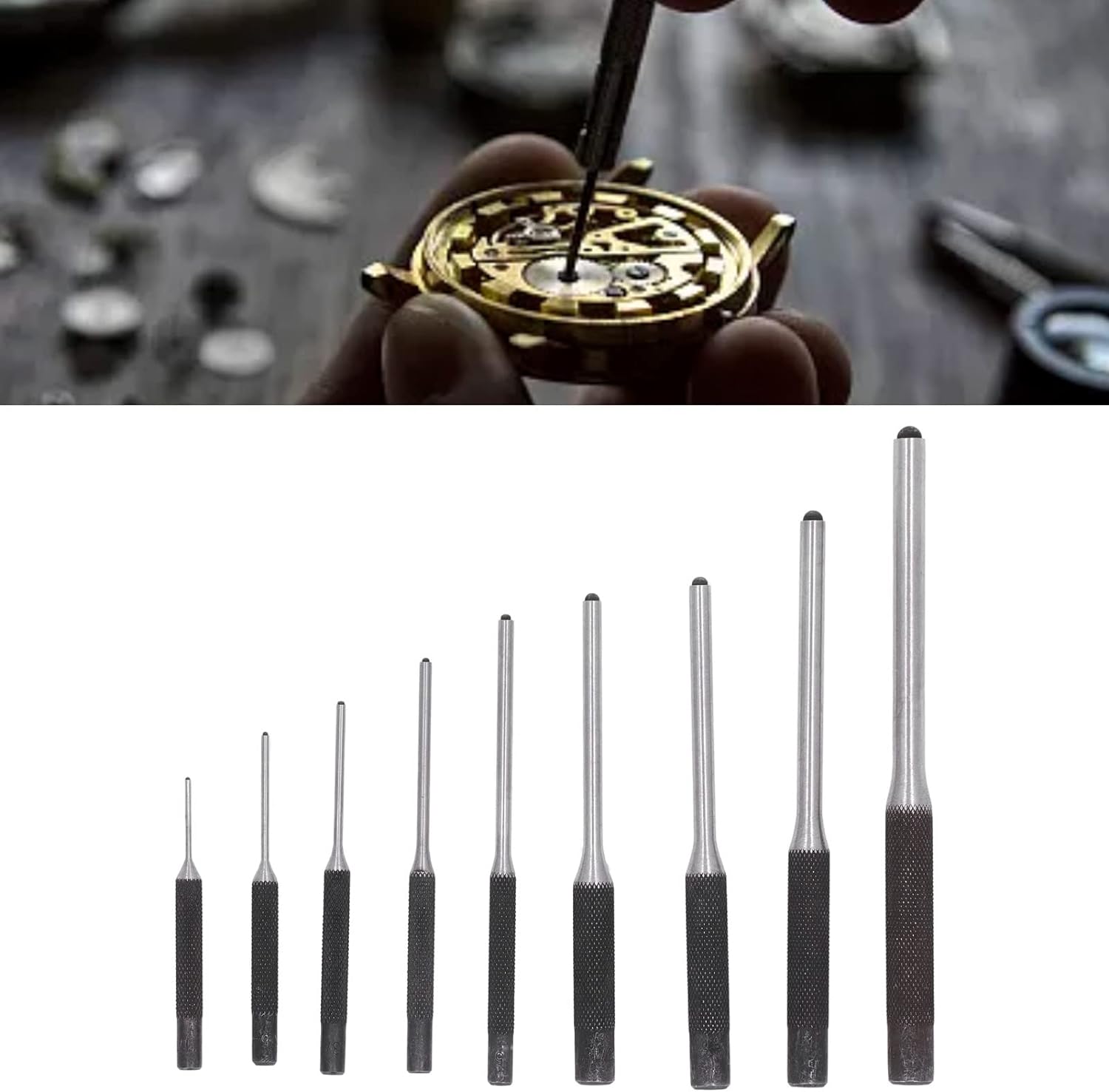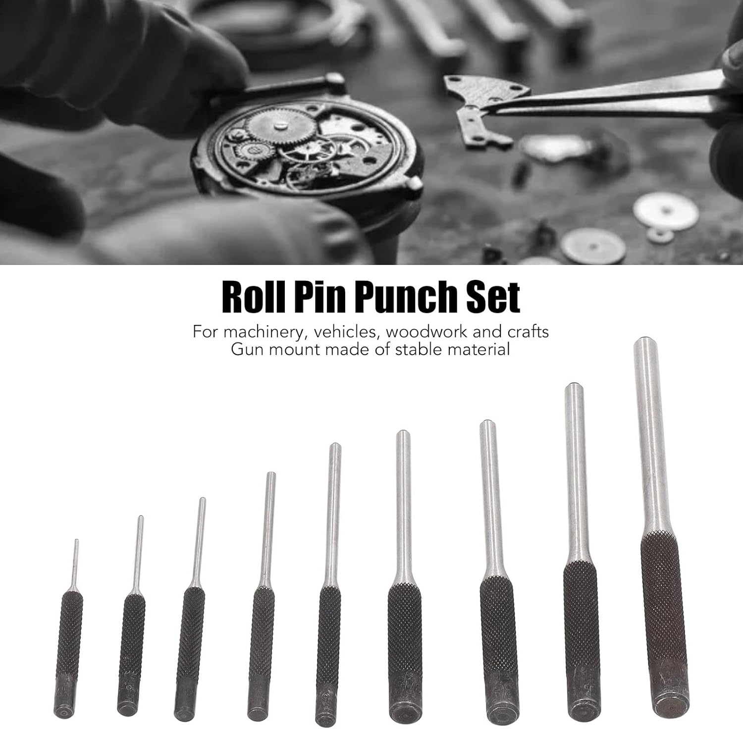 - 【Praktisch und praktisch】: Das Spannstift-Set enthält einen allgemeinen Waffenblock, 9 Stifttreiber in verschiedenen Grössen und einen Hammer mit 2 Ersatzgummispitzen, die für Maschinen, Fahrzeuge, Holzarbeiten und Kunsthandwerk verwendet werden