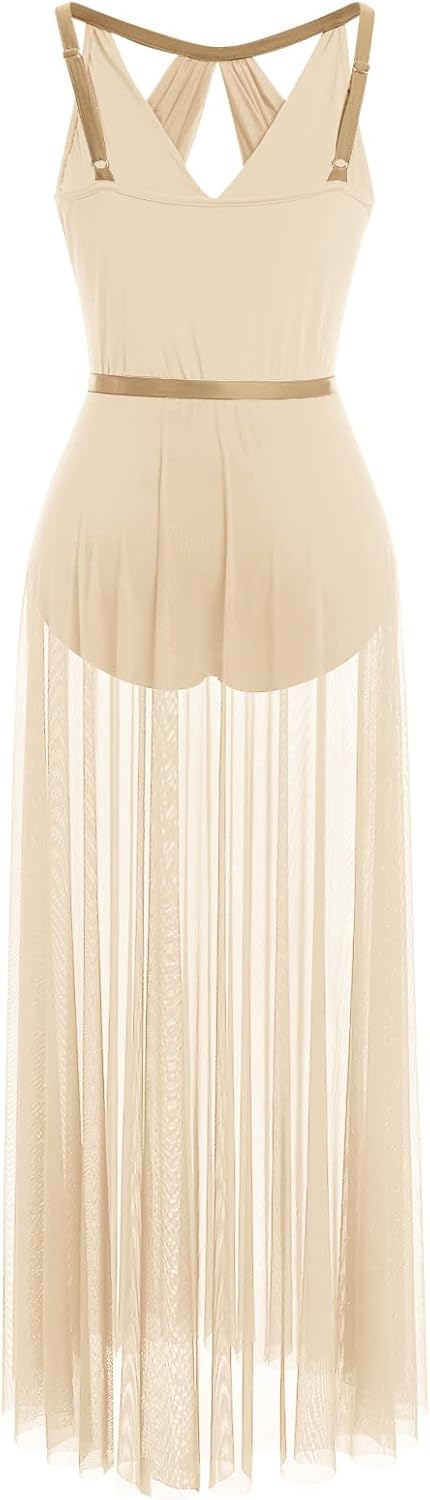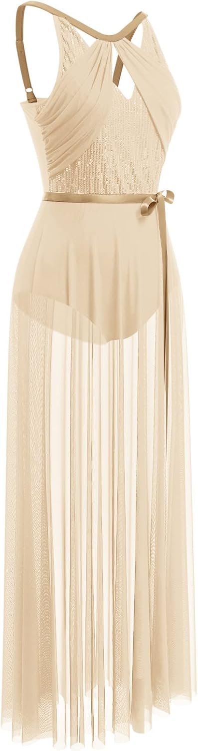 • FRAUEN LYRISCHEN TANZ TRIKOT: Gorgeous erwachsenen Frauen lyrischen Tanz Outfit Kostüm. Frauen zeitgenössischen Tanz Trikot Tank Bodysuit. Ärmellos, V-Ausschnitt, verstellbare Spaghetti-Träger, Pailletten, Tüll und selbst gebundenen Gürtel.