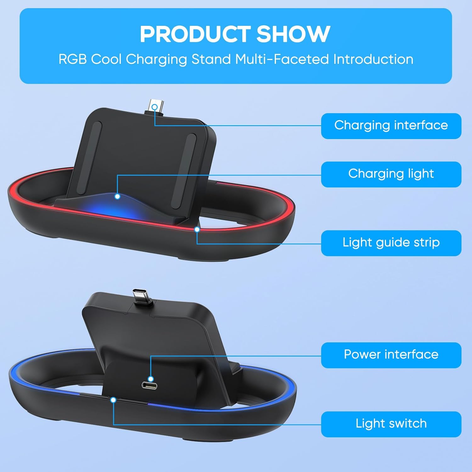 • Einfach zu benutzen: Richten Sie einfach den USB-Anschluss des Handhelds auf den Anschluss des Ladegeräts aus und legen Sie den Controller zum Aufladen ab.Ausgestattet mit einer Typ-C-Schnittstelle, um Ihre unterschiedlichen Bedürfnisse zu erfüllen.
