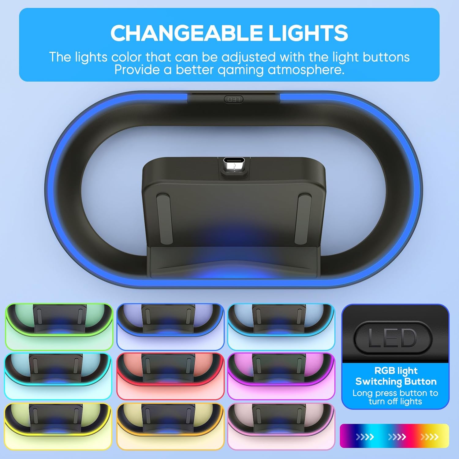• Kühlung RGB-Beleuchtungseffekt für Playstation Portal: Die Ladestation für Ps Portal mit 14 lebendigen RGB-Farboptionen passt sich Ihrem Spielambiente und Ihrem persönlichen Stil an. Sie können durch Regenbogen- oder andere Farben wechseln, ohne die