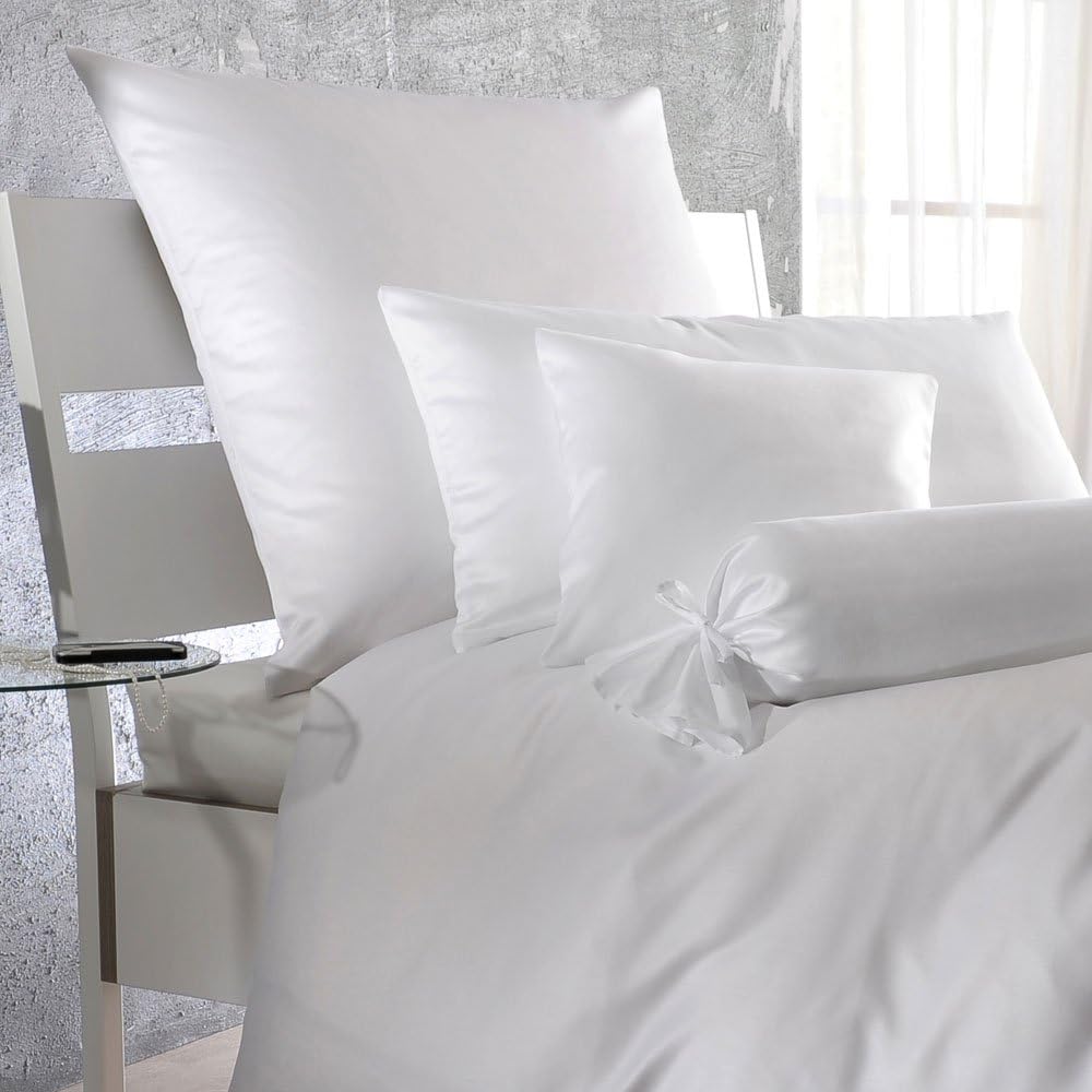 - -: Klassisch schlichte Bettwäsche im Farbton Weiss: Glänzende Mako-Satin Qualität für das ganze Jahr geeignet, ideal für Boxspringbetten