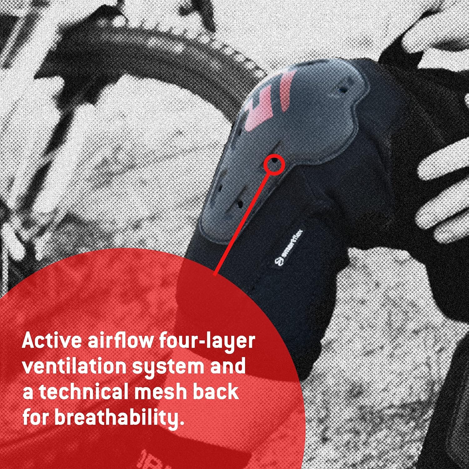 - Mountain & Dirt Bike-Ausrüstung: Diese Kniepolster verfügen über ein 4-lagiges Belüftungssystem und einen verstellbaren Riemen für individuellen Halt und Komfort