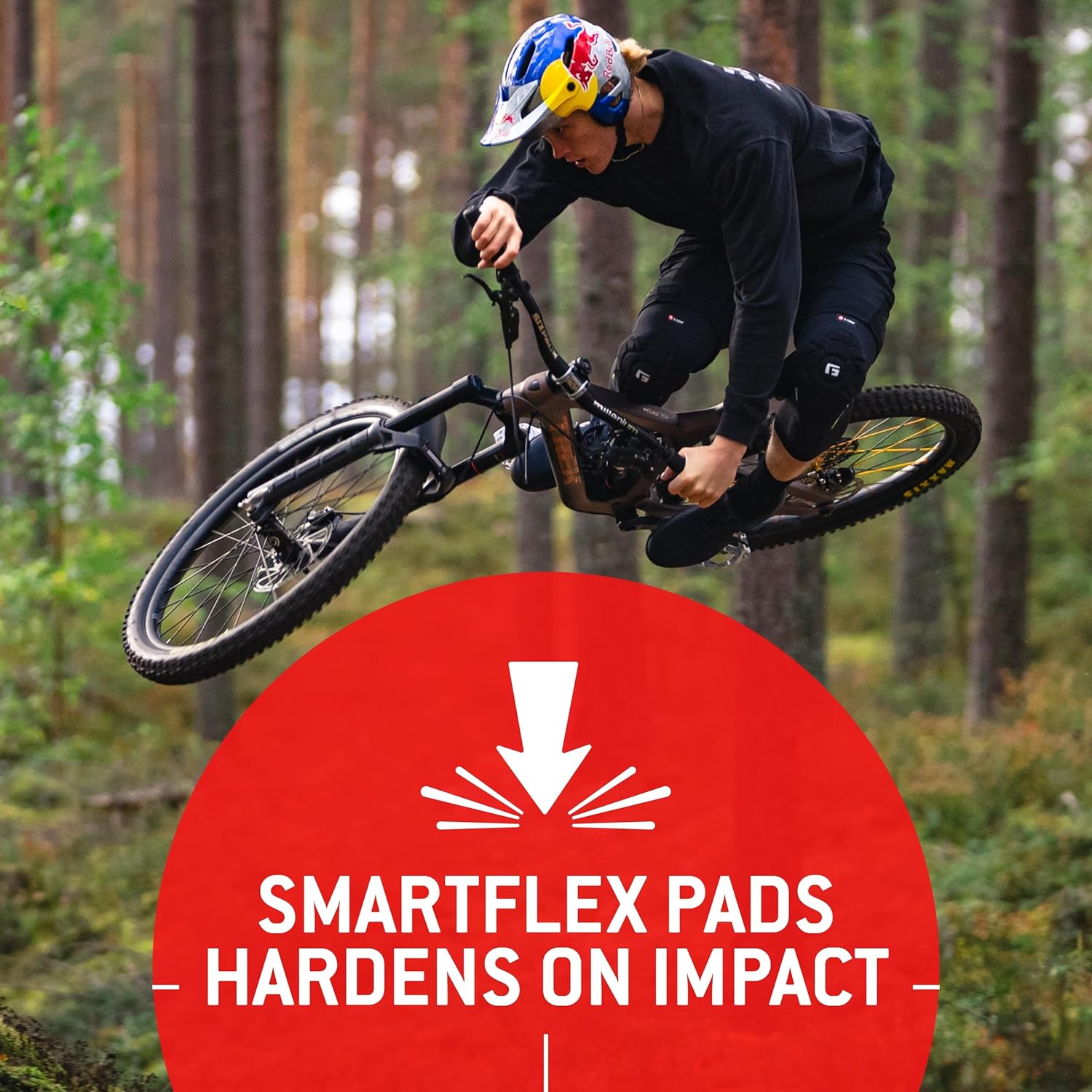 - Mit Smartflex: flexibel beim Fahren. Härtet beim Aufprall Schicht 1: DuraTx sorgt für Langlebigkeit und widersteht Reissen oder Verhaken. Schicht 2: Body-Mapped, stossabsorbierende SmartFlex-Pads Schicht 3: weicher Innenschaum hält die Pads sicher und