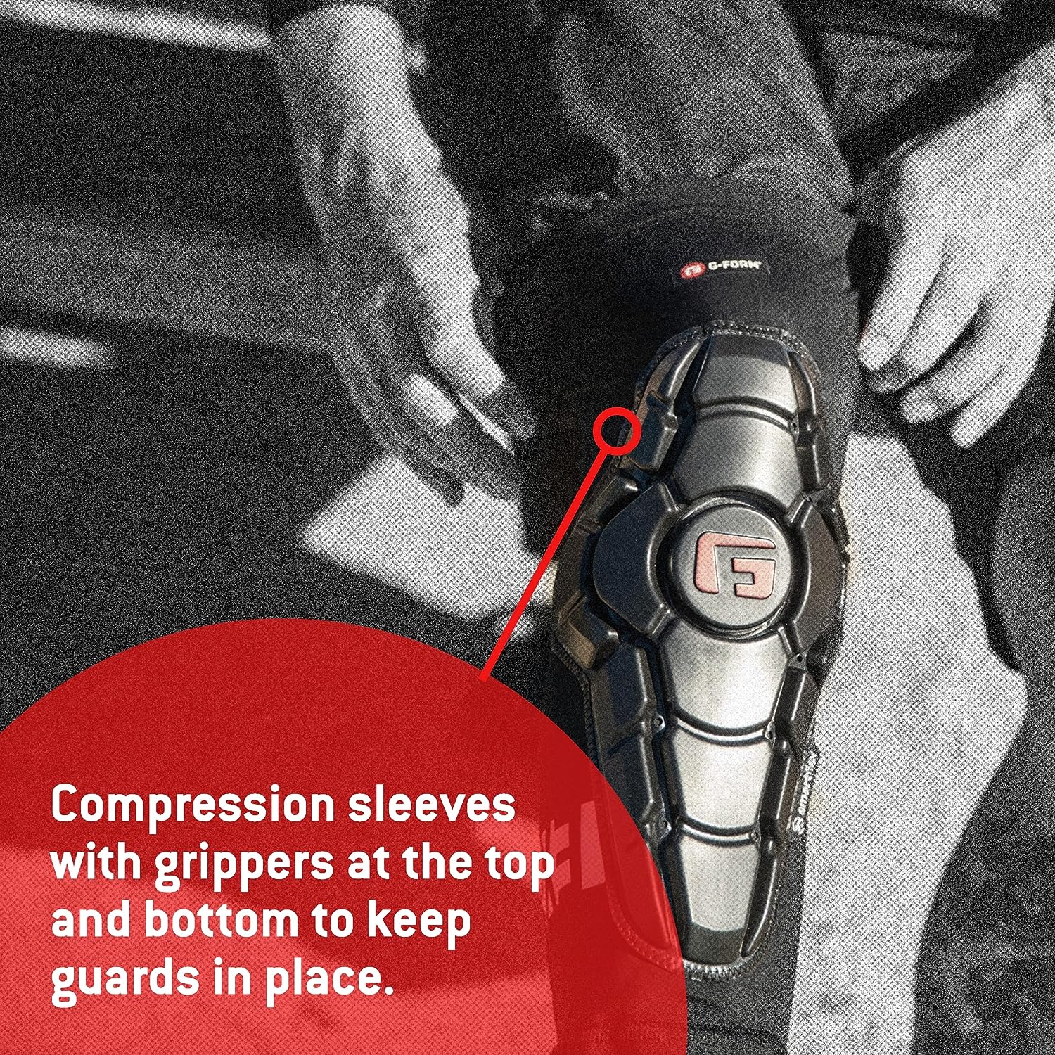 - Compression sleeves with grippers at the top and bottom to keep guards in place