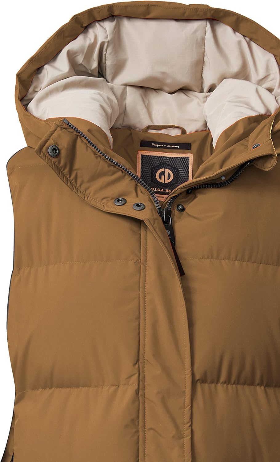 - angesagte lange Weste in Daunenoptik mit grosser Kapuze