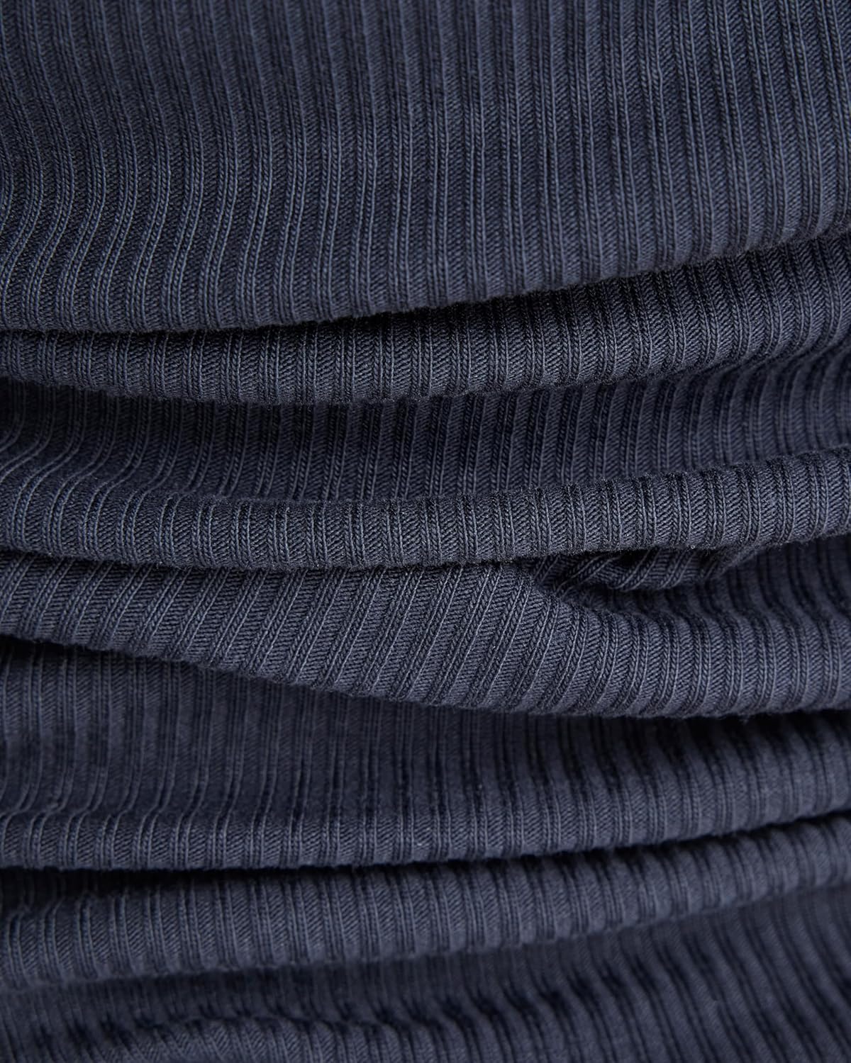 PRODUKTBESCHREIBUNGEN SLIM RIB KLEID MOCK Das Rib Mock Kleid ist in einem Slim Fit geschnitten. Unter dem angedeuteten Stehkragen ist ein Grafikprint platziert. Bei diesem knielangen Kleid sind die langen Ärmel etwas länger gestaltet. An den längeren Bündchen befinden sich Daumenlöcher.