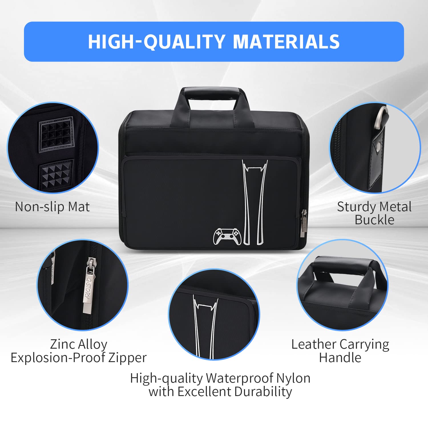 • đŸŒŒă€Verdickte Hartschalentasche fĂŒr PS5-Konsole】: Die G-STORY PS5-Hartschalentasche besteht aus strapazierfĂ€higem Nylonmaterial und ist durch mehrere Lagen Pappe verdickt. Wir haben die Stossfestigkeit und den Schutz der PS5-Transporttasche