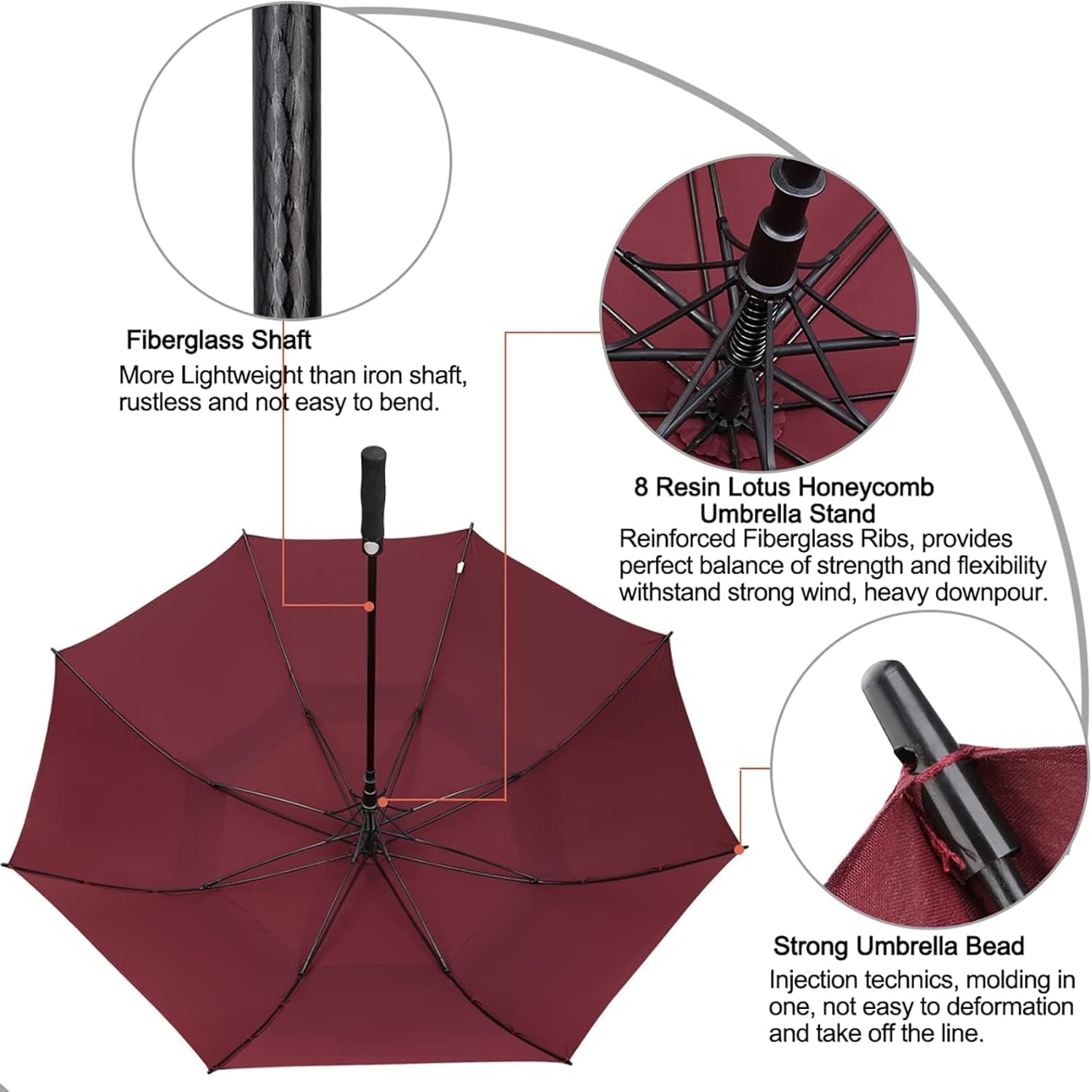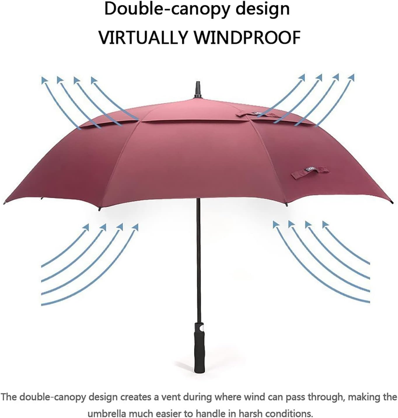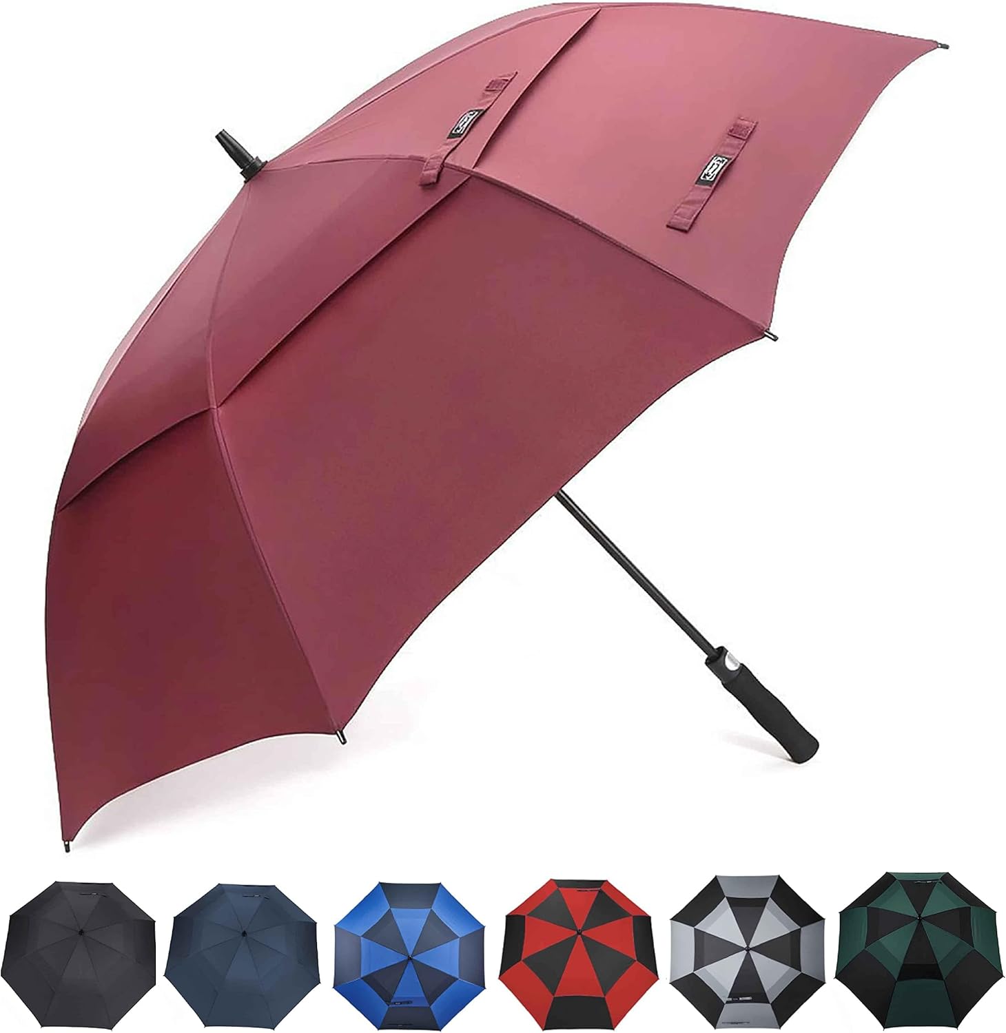 - DER ULTIMATIVE GOLF-REGENSCHIRM: Doppelter Baldachin, 8 verstärkte, leichte Glasfaser-Rippen, stabiler Rahmen, 210T-Pongee-Stoff mit hoher Dichte, der Regentropfen effektiv abwehrt und schnell trocknet, komfortabler EVA-Griff, automatischer
