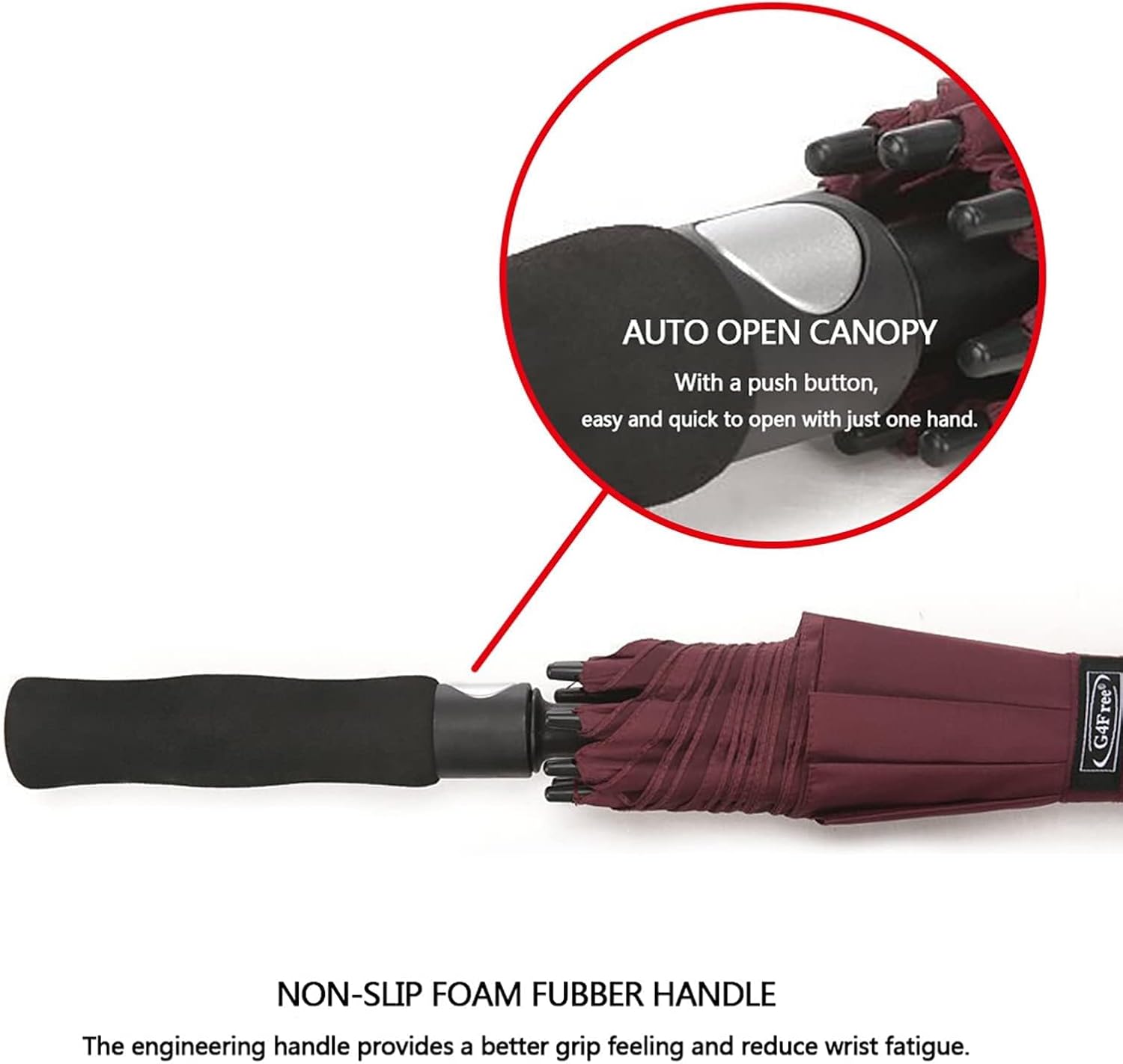 - LEICHT UND SCHNELL ÖFFNEN: Dank des Glasfasermaterials ist der Regenschirm leicht und kann mit einer Hand gehalten werden. Die automatische Öffnungsfunktion sorgt dafür, dass Ihr Komfort nicht verzögert wird. Zum Öffnen einfach den Knopf am Griff