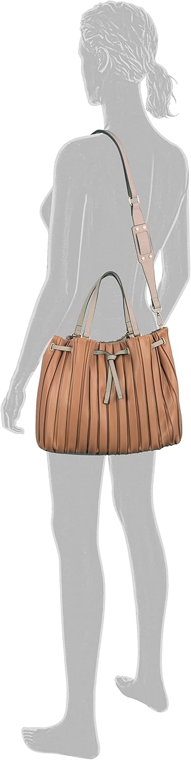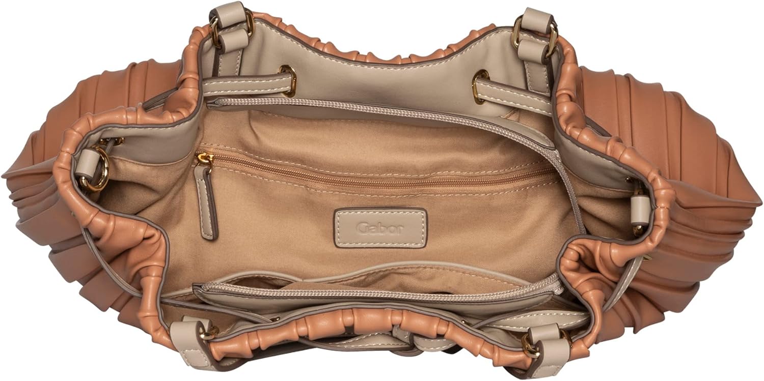 PRODUKTBESCHREIBUNGEN Gruppe IMANI besteht aus plissierten und lässigen Modellen, die viel Stauraum bieten. Das Taschenvolumen kann durch den Tunnelzug angepasst werden. Der hochwertig gearbeitet Schulterriemen komplementiert den Look. Shopper mit Reissverschlussöffnung, 1 Reissverschlussrückfach. Innen 1 Reissverschlussfach, 1 Smartphone-Fach, 1 Steckfach, DIN-A4-tauglich, doppelter flacher Trageriemen,verstellbarer Schulterriemen, abnehmbar.