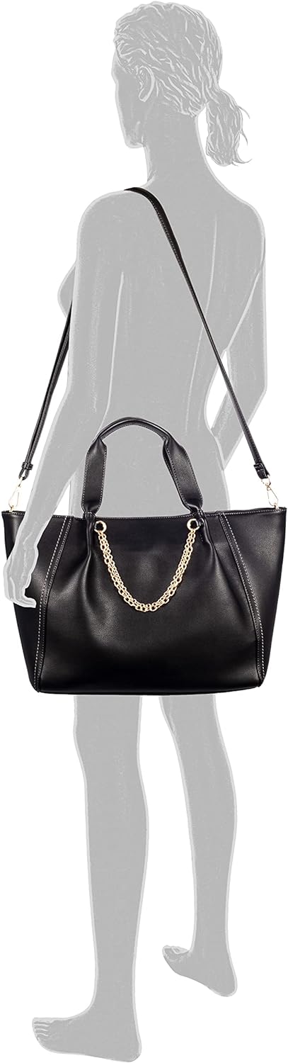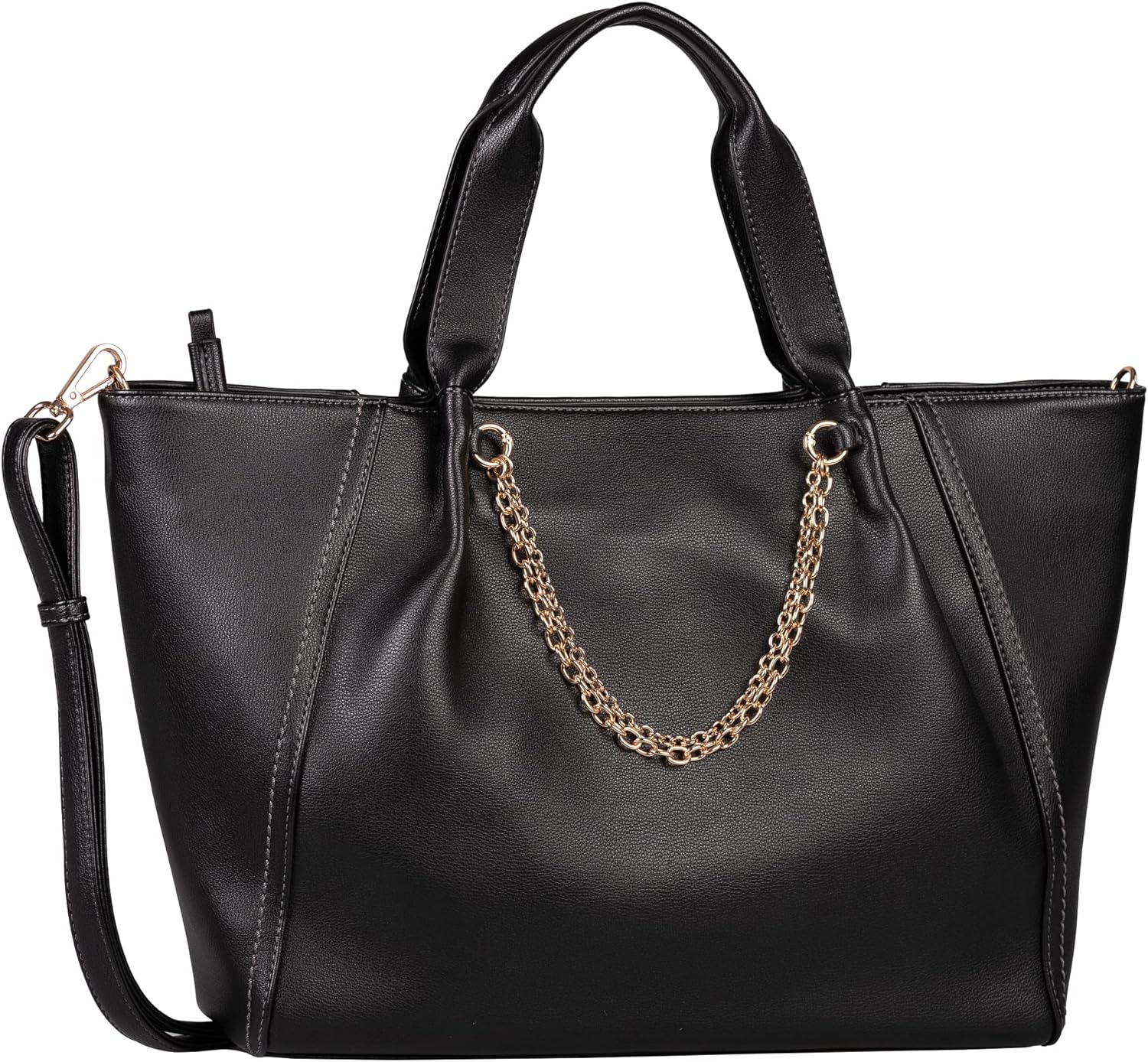 PRODUKTBESCHREIBUNGEN Die Gruppe JILIAN aus fein genarbtem Kunstleder kombiniert eine klassische Formensprache mit aufwändiger Verarbeitung. Unterstrichen wird das Design zusätzlich mit einer zentral platzierten, abnehmbaren Statement Kette. Shopper mit Reissverschlussöffnung, 1 Reissverschluss-Rückfach. Innen 1 Reissverschlussfach, 1 Smartphone-Fach, 1 Steckfach, DIN-A4-tauglich, 2 Tragegriffe, 1 abnehmbarer, verstellbarer Schulterriemen.