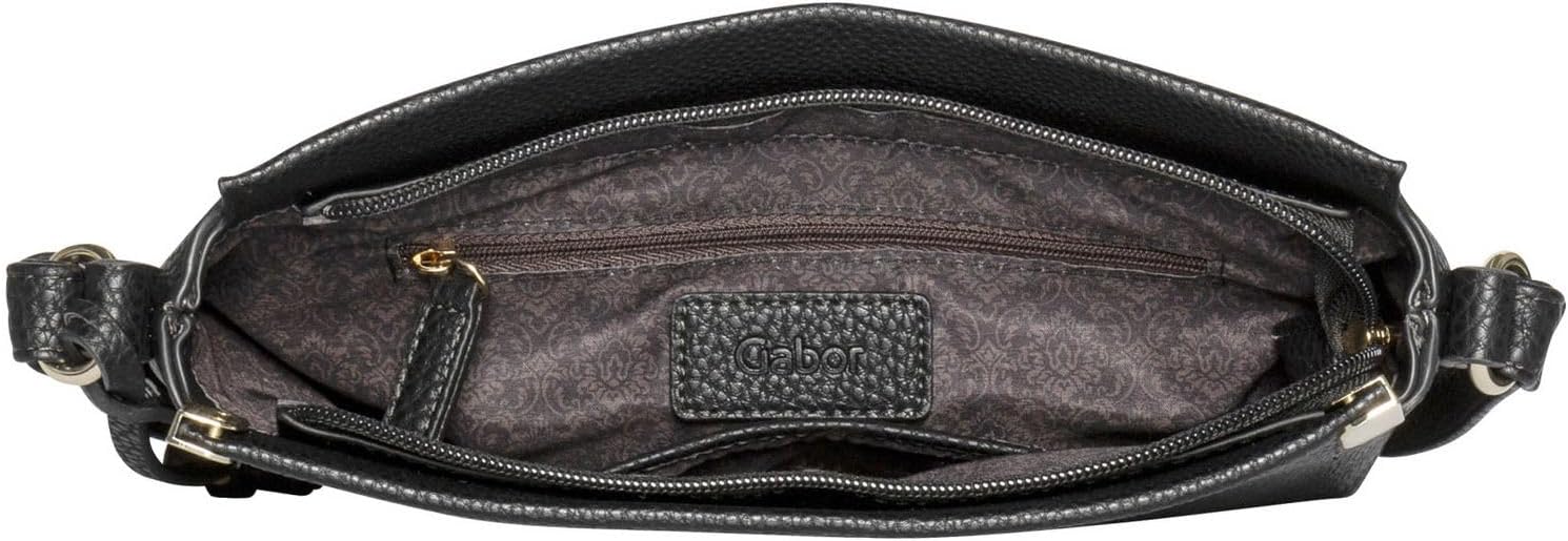 PRODUKTBESCHREIBUNGEN Die Gruppe GELA aus grob genarbtem Lederimitat in zeitlosen Farben ist dank ihrer klassischen Formgebung vielseitig kombinierbar, und das mit einer elegant-femininen Note. Mit schmückenden goldenen Metallecken und dem hochwertigen Gabor Logo Anhänger wird jede Tasche dieser Gruppe zum idealen Begleiter, egal ob City- oder Büro-Outfit. Passend zu den Taschen ist auch eine funktionale XL-Reissverschlussbörse erhältlich. Umhängetasche mit Reissverschlussöffnung, 1 Reissverschlussrückfach. Innen 1 Reissverschlussfach, 1 Smartphone-Fach, 1 verstellbarer Schulterriemen.