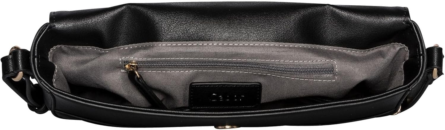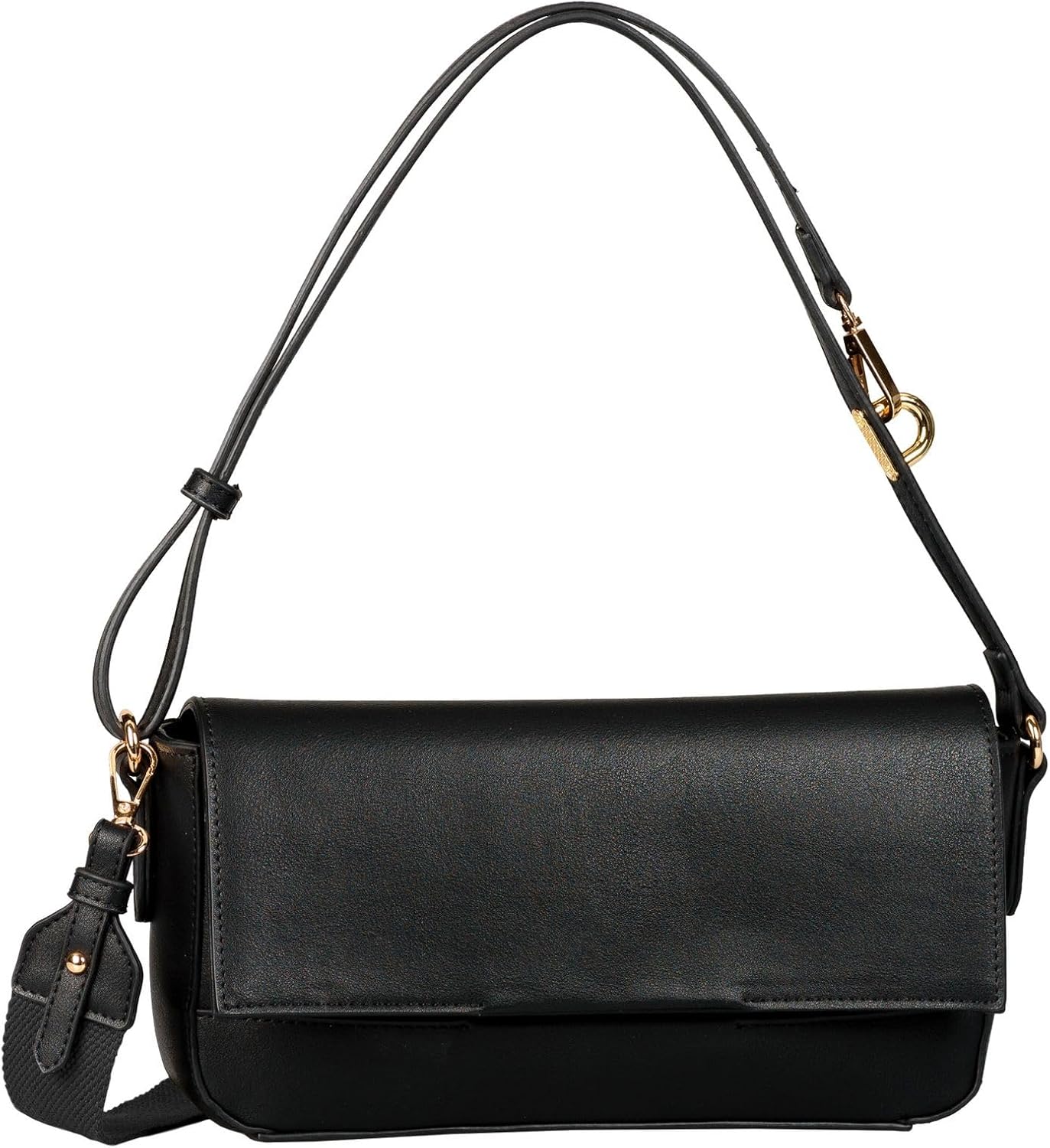 PRODUKTBESCHREIBUNGEN Klare Linien und edles Glattleder Imitat mit goldenen Beschlägen zeichnen diese Umhängetasche aus. Das formstabile handliche Modell, sowie das puristische Design machen diese Tasche zu einem zeitlosen eleganten Begleiter. Überschlagtasche mit Magnetverschluss, 1 Reissverschlussrückfach, innen 1 Reissverschlussfach, 1 Smartphone-Fach, 1 verstellbarer flacher Henkel, 1 langer verstellbarer Schulterriemen - abnehmbar.