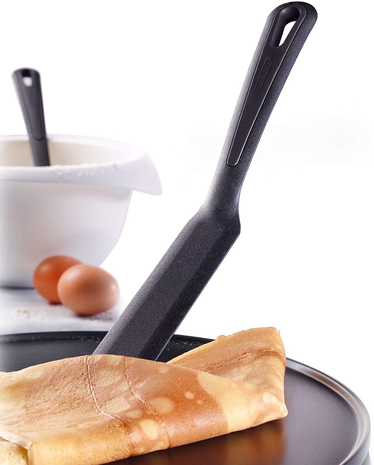 • Produkt 2: Langer Crêpes-Spatel aus Kunststoff zum Wenden von Pfannenkuchen, Pancakes oder Crêpes in der Pfanne, Mit abgeflachten Kanten für das einfache Aufnehmen ihrer Speisen