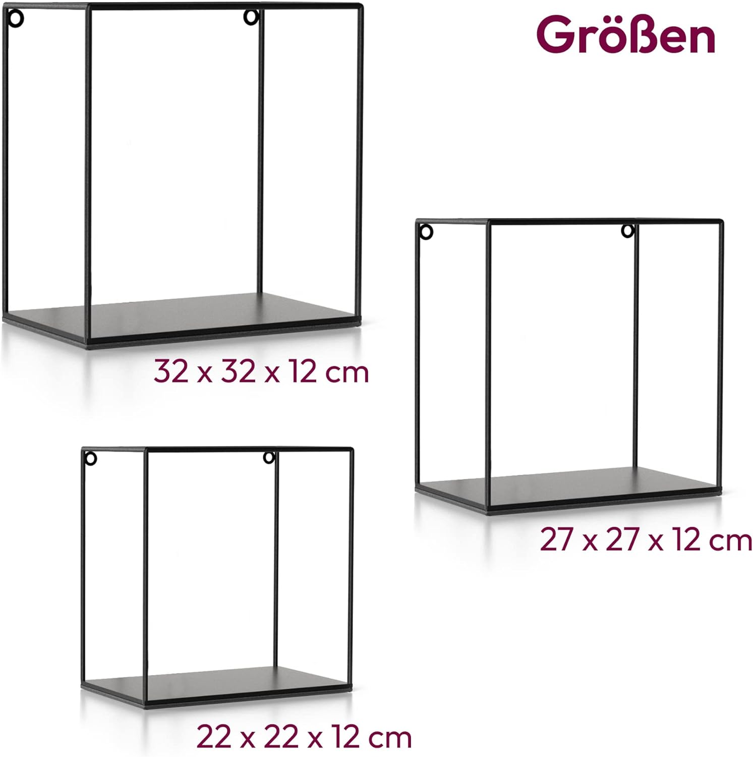 - 3ER-SET - Dieses Set enthält 3 metallregal in verschiedenen Grössen. Das kleine Regal ist 22x22x12 cm, das mittlere 27x27x12 cm und das grosse 32x32x12 cm gross.