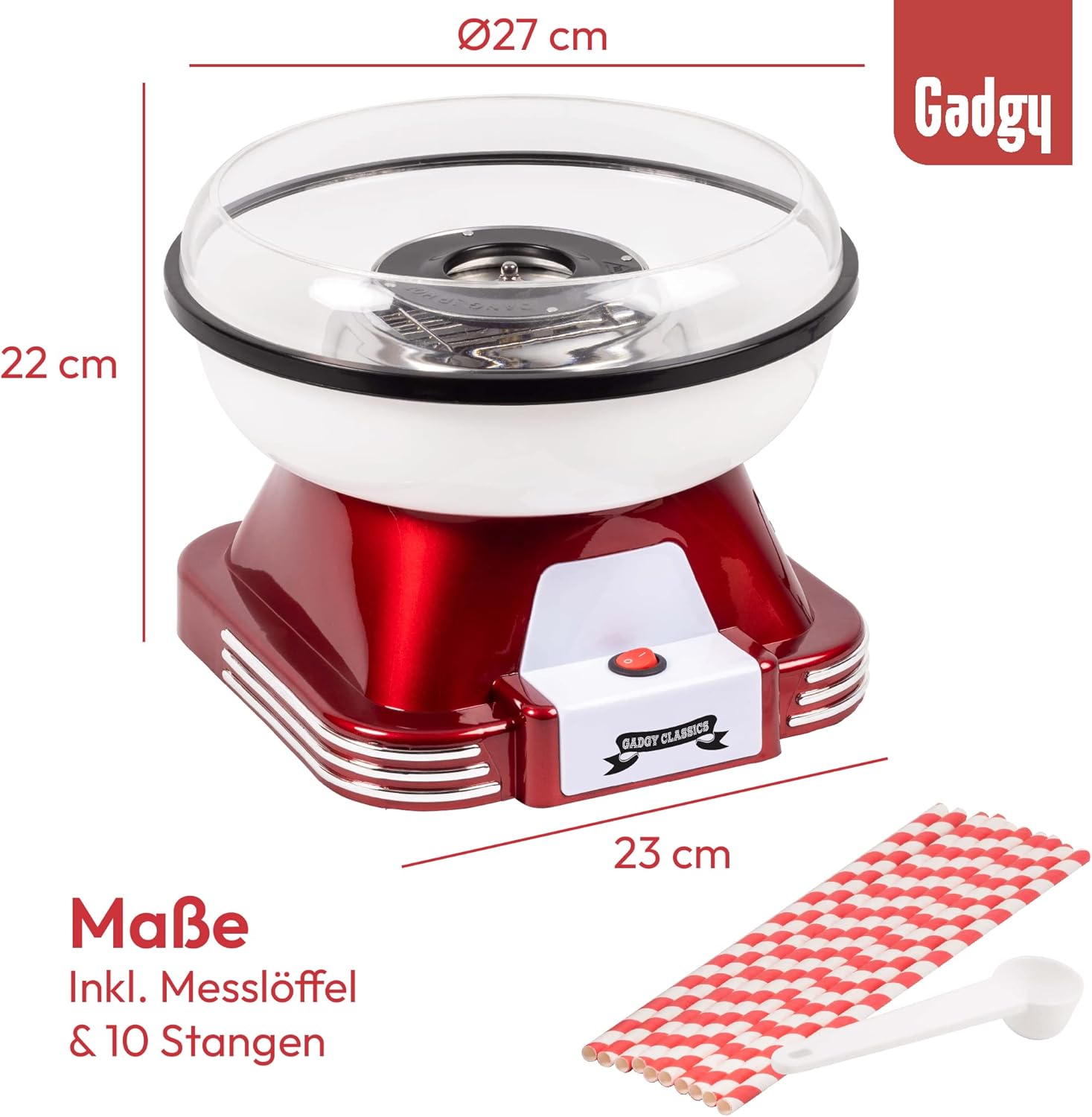 Gadgy Zuckerwattemaschine für zuhause - Retro Cotton Candy Machine - Zuckerwatte Maschine mit Stäbch