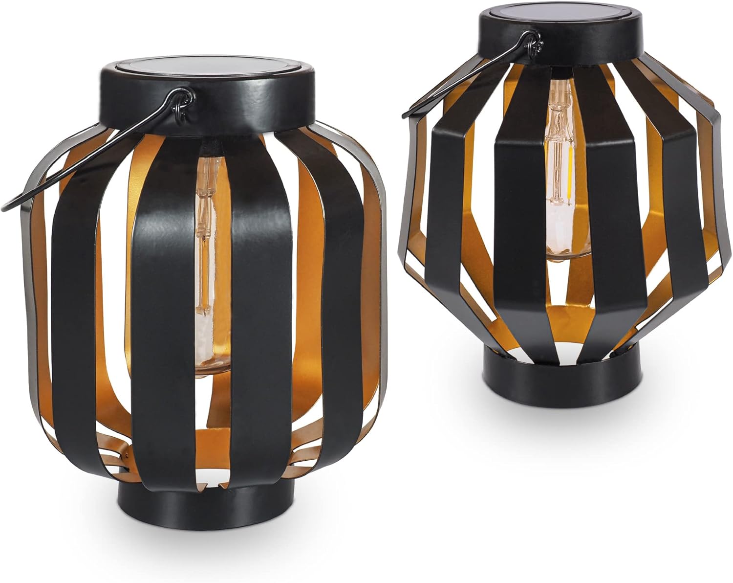 - 2 STÜCK - 2 Solarlampen für den Garten, jede mit einem anderen Design. Geeignet als Tischleuchte oder Hängelaterne.
