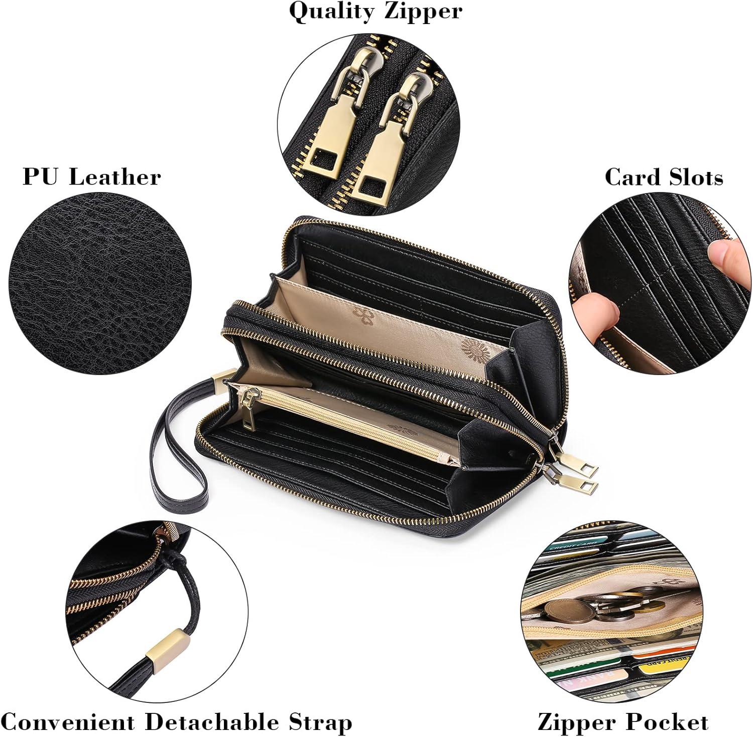 - 【Praktische Griffhandschlaufe】Diese umlaufende Clutch-Geldbörse mit Reissverschluss verfügt über eine verstellbare Griffhandschlaufe und ein abnehmbares Armband, das ideal für vielbeschäftigte Frauen unterwegs ist und bequem und sicher um Ihr
