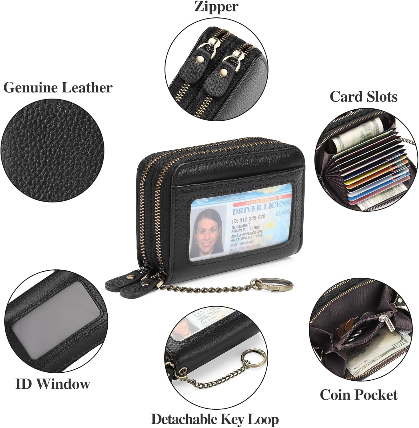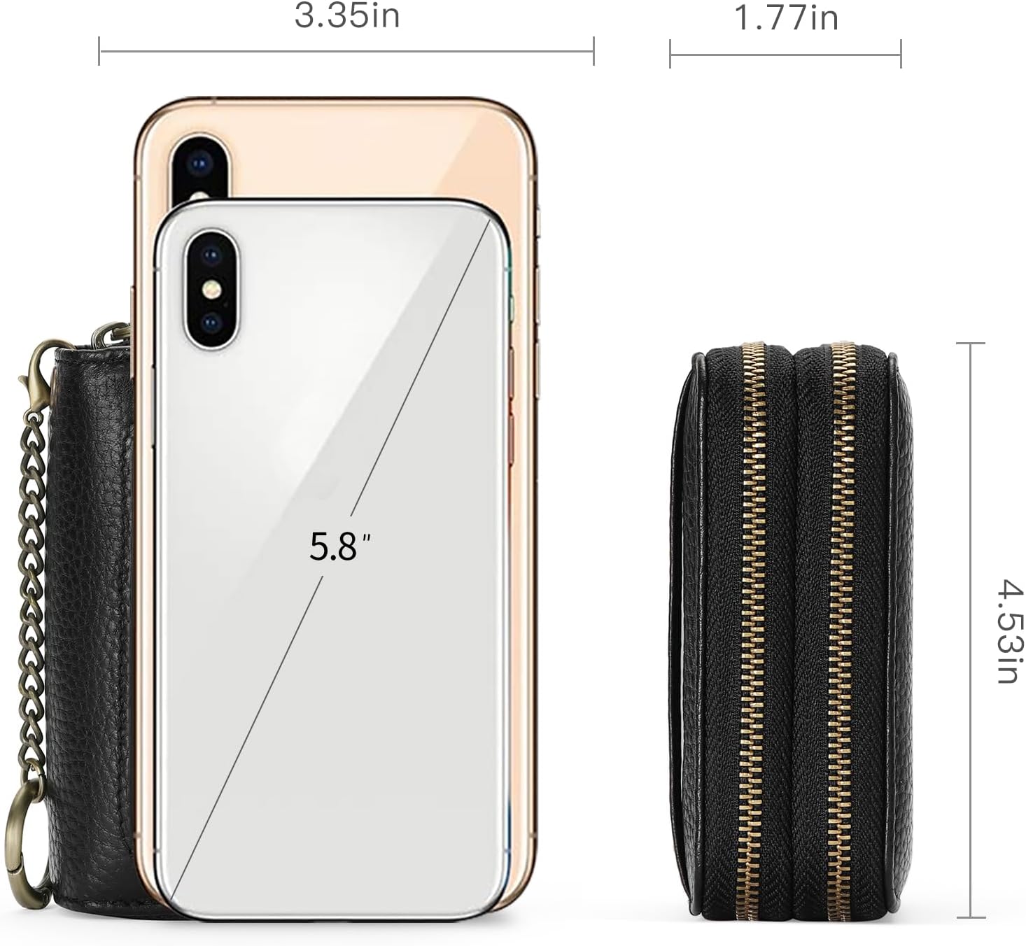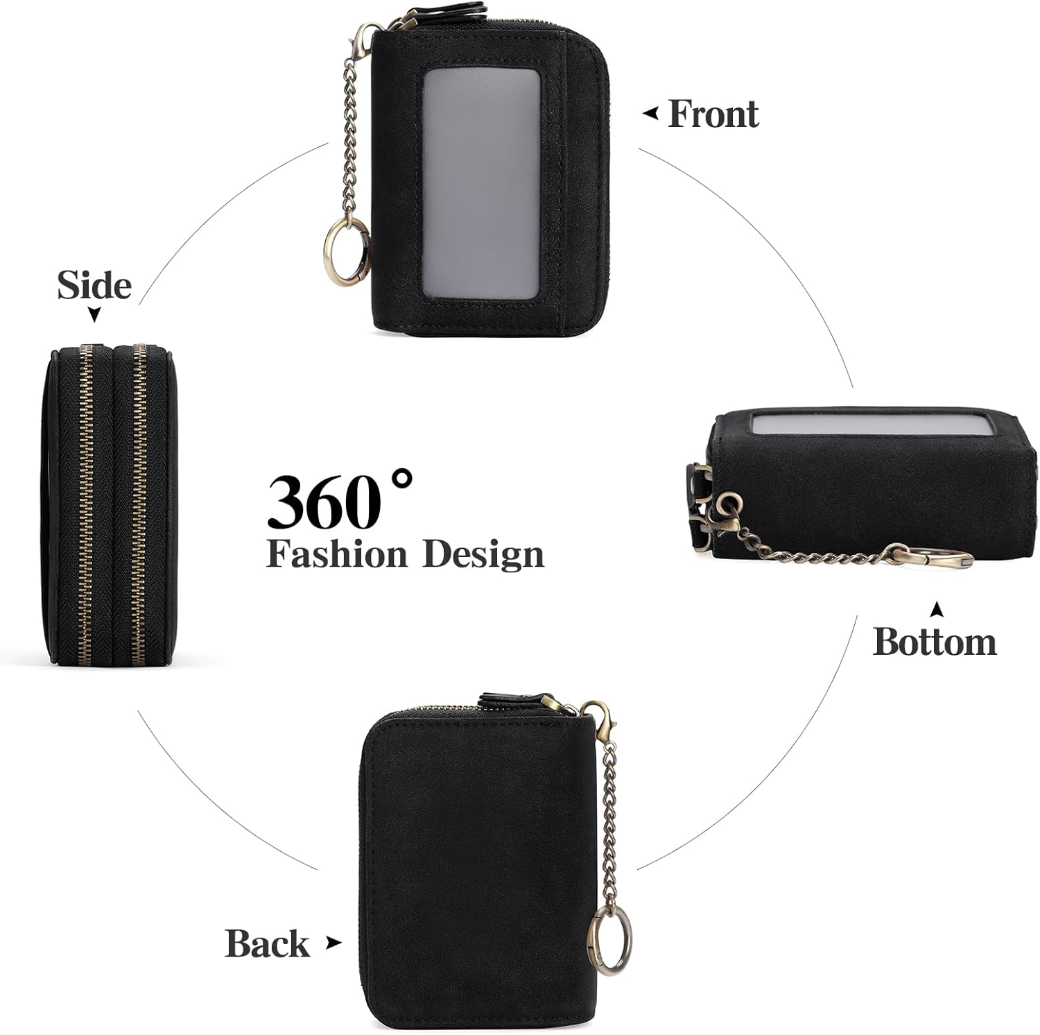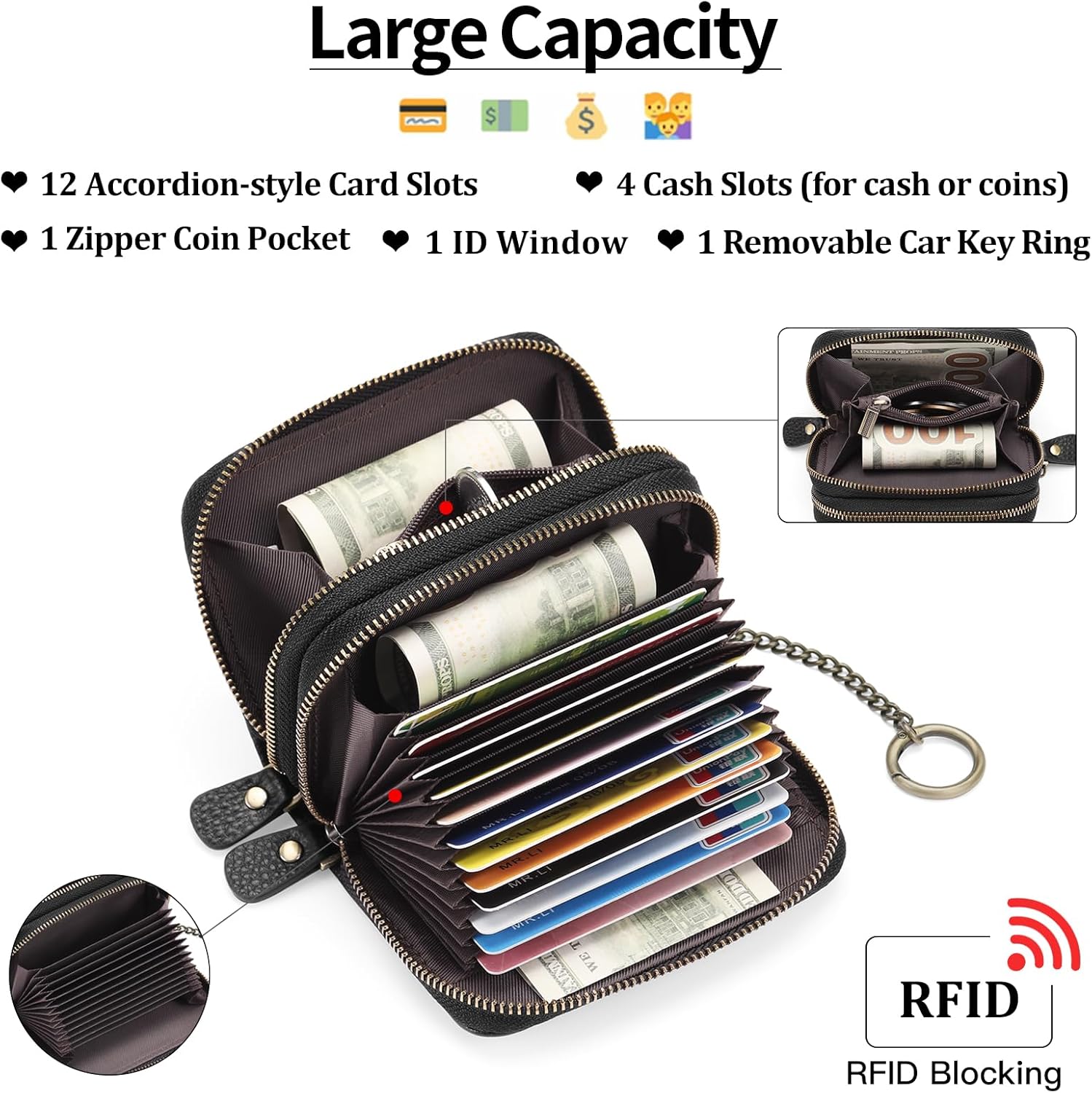 - 【Doppeltes Reissverschluss-Multi-Slot-Kartenetui】: 12 Kreditkartenfächer aus Organza, 4 Bargeldfächer, 1 Reissverschlusstasche, 1 klares Ausweisfenster und 1 abnehmbarer Portemonnaie-Schlüsselanhänger sind gross genug, um Ihre Schlüssel und