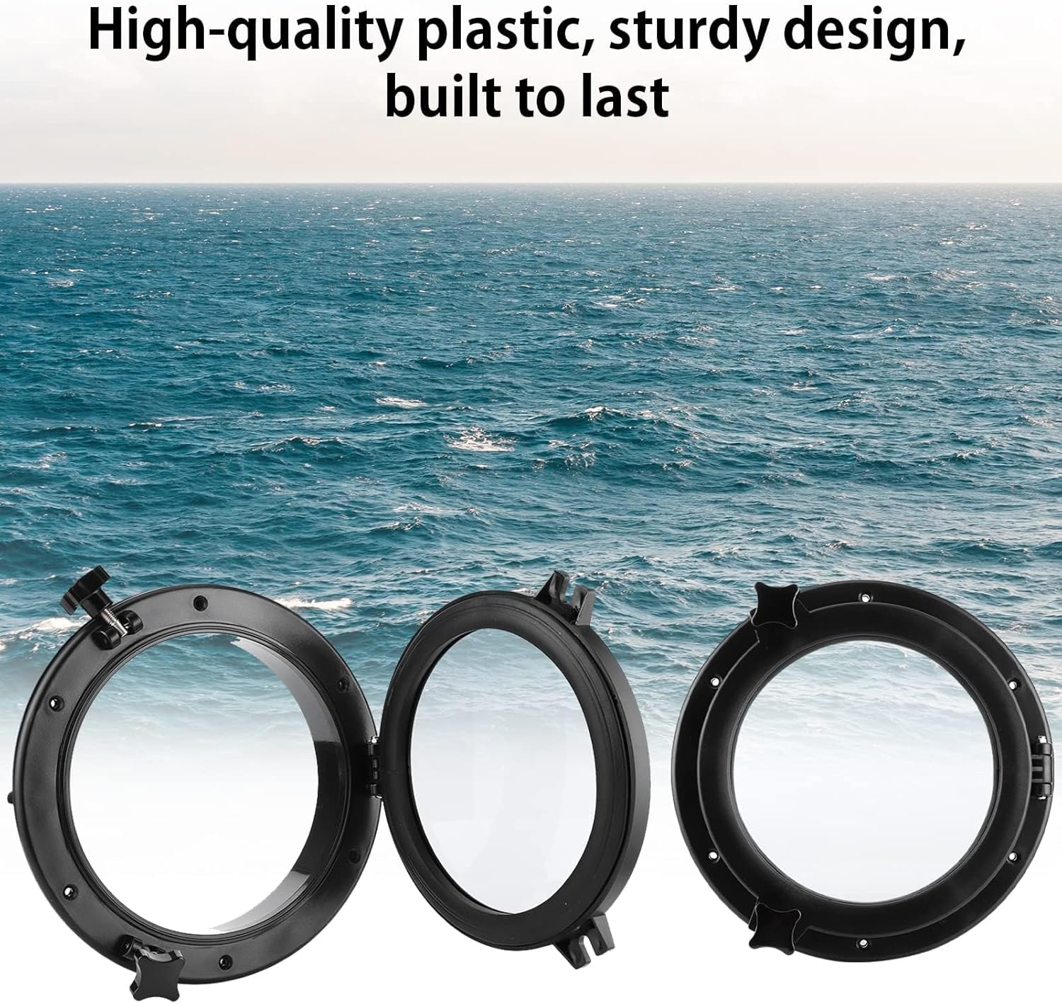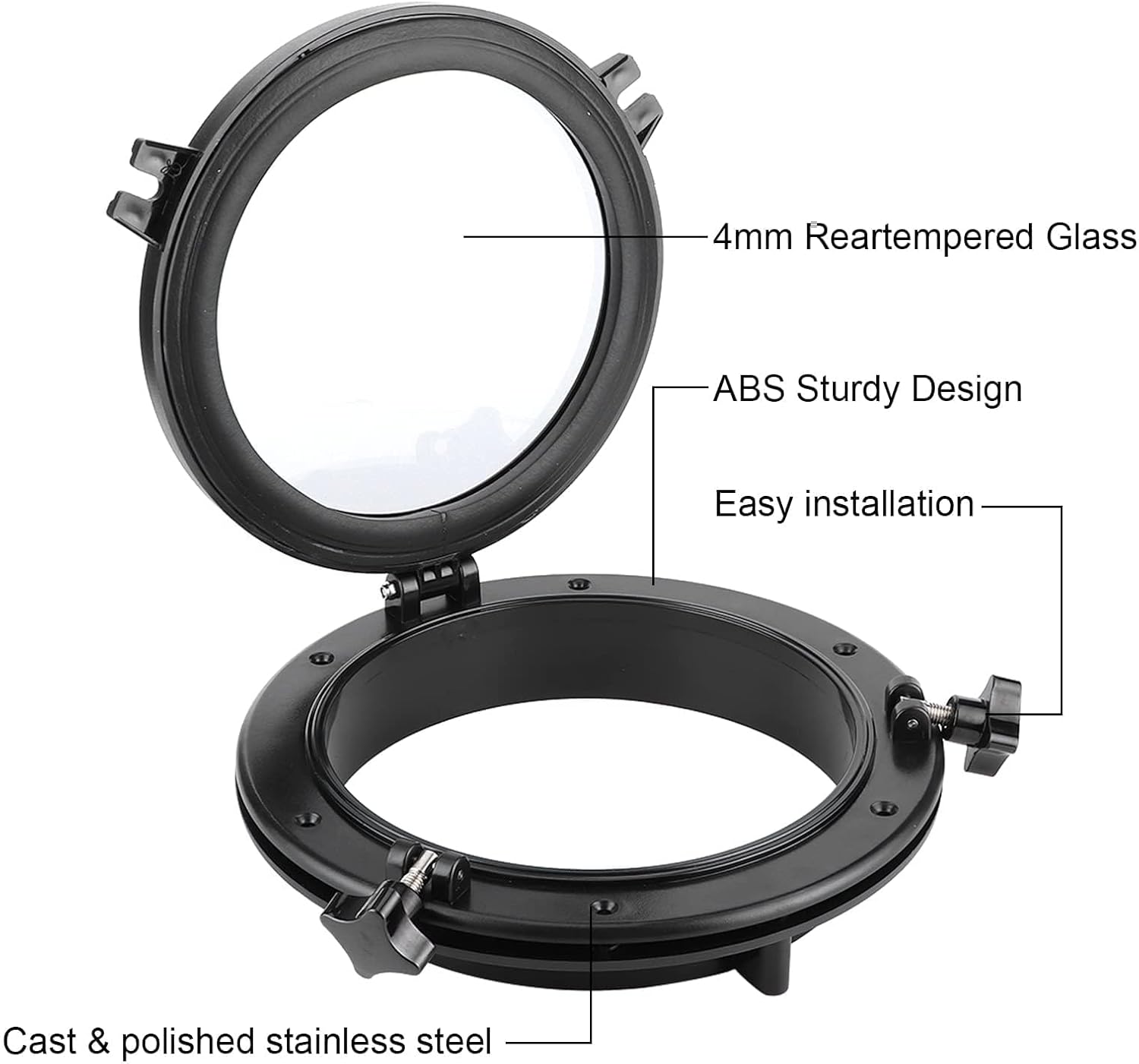 - MATERIAL: 10-Zoll vorgebohrtes Bullauge-Fenster Material ist ABS, 4 mm dickes gehärtetes Glas, robust und langlebig, nicht leicht zu beschädigen. Die beiden Anschlüsse können gelöst werden, damit Sie das Bullauge aufschwenken können.