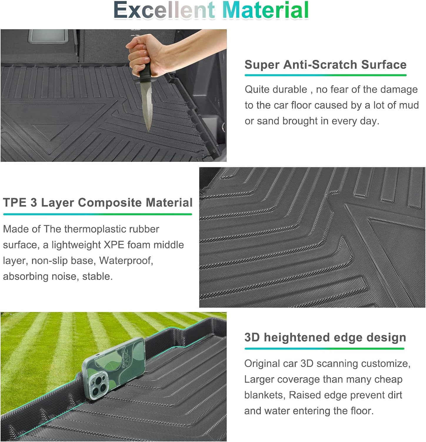 - 【Mehrschichtige Konstruktion & High-Edge-Design】 Die Oberfläche aus thermoplastischem Gummi ist wasserdicht, die Mittelschicht aus leichtem XPE-Schaum absorbiert Vibrationen und reduziert Geräusche, und die untere Schicht hat eine hervorragende