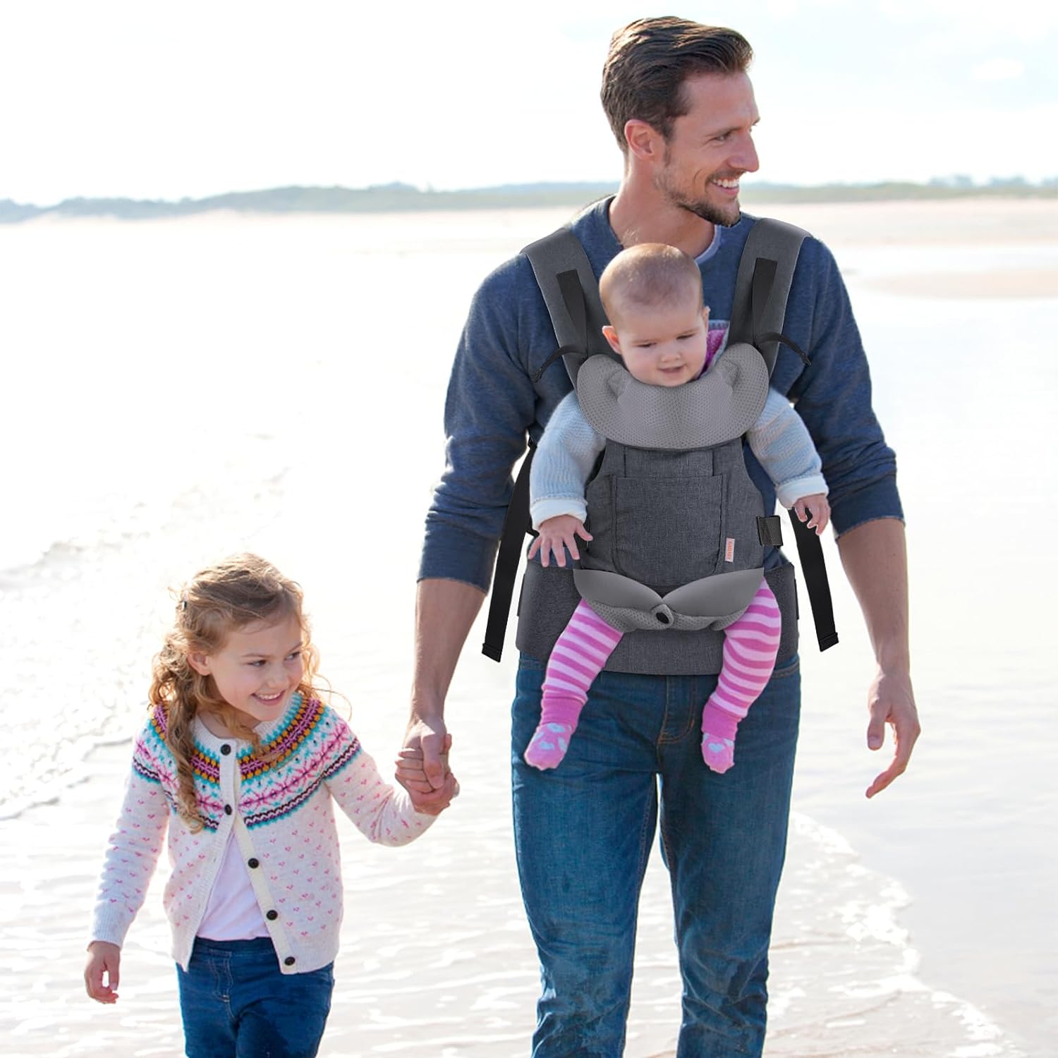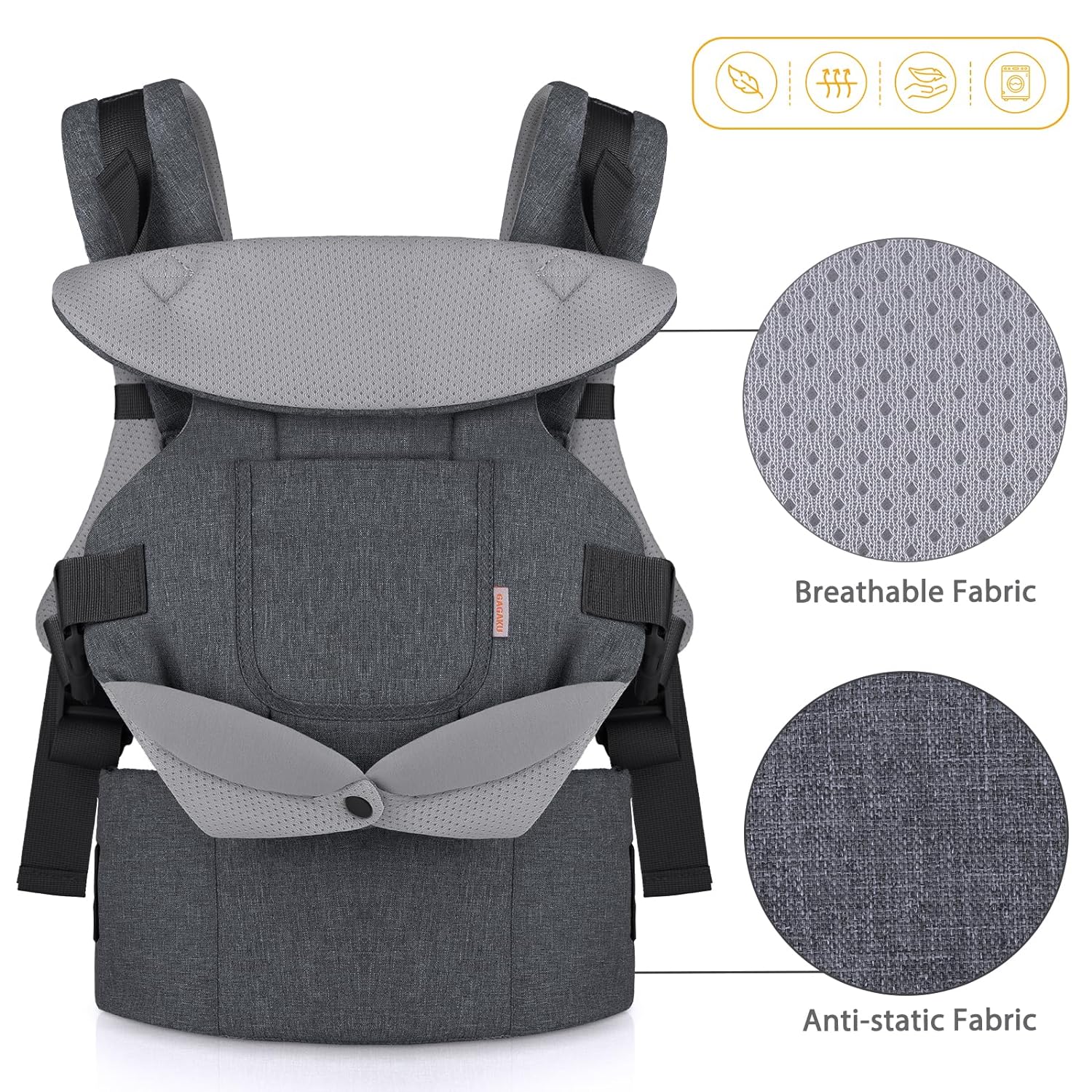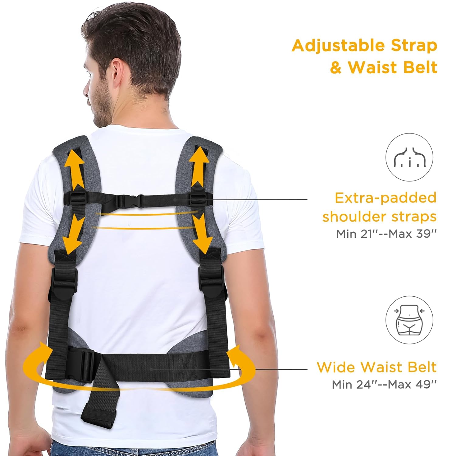 - FITGO Verstellbarkeit: Verstellbare Breite der Hüften des Babys für verschiedene Positionen, gepolsterte Schultergurte und unterstützender Hüftgurt, entworfen, um eine Vielzahl von Körpertypen und Lebensstil zu passen.