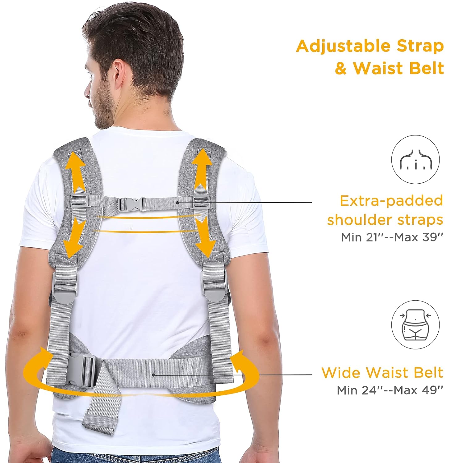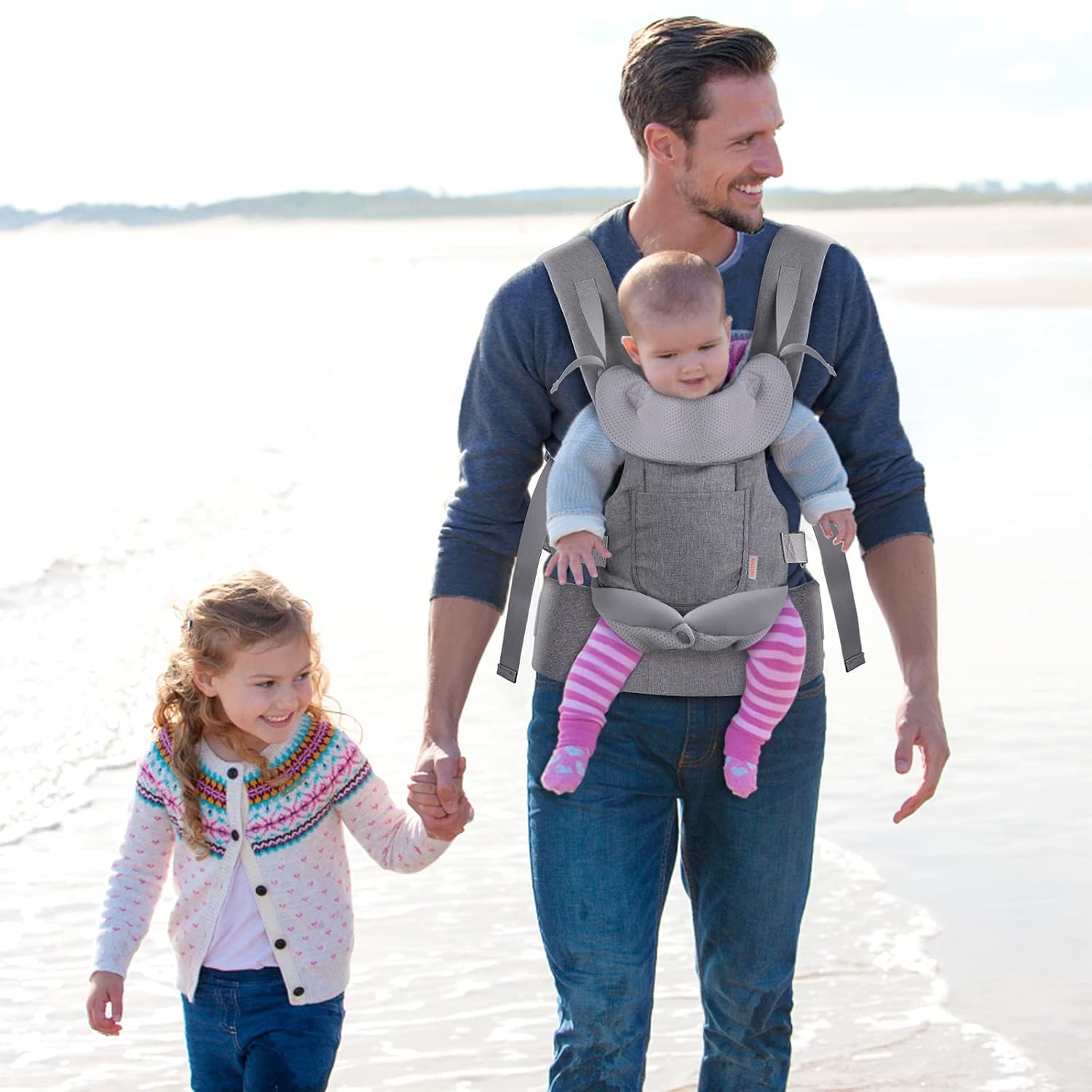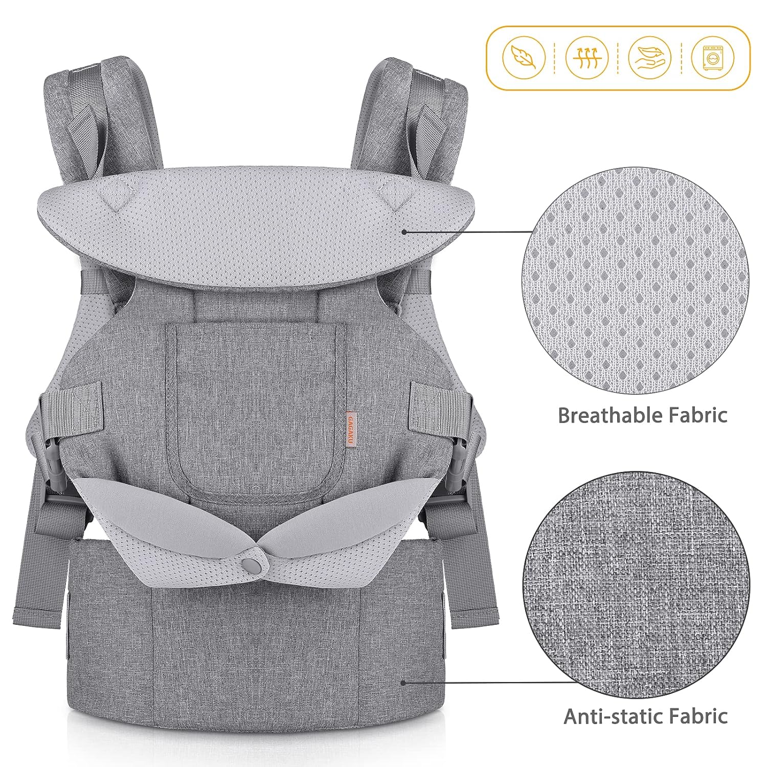 • FITGO Verstellbarkeit: Verstellbare Breite der Hüften des Babys für verschiedene Positionen, gepolsterte Schultergurte und unterstützender Hüftgurt, entworfen, um eine Vielzahl von Körpertypen und Lebensstil zu passen.