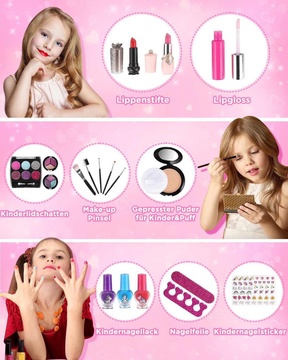 - MAKE-UP für MÄDCHEN EXKLUSIVE GESCHENKOPTIONEN: Es liegt in der Natur eines jeden, Schönheit zu lieben, und Kinder auch! Das wirklich sichere und waschbare Make-up-Set wurde speziell für Mädchen im Alter von 4, 5, 6, 7, 8 Jahren entwickelt und ist
