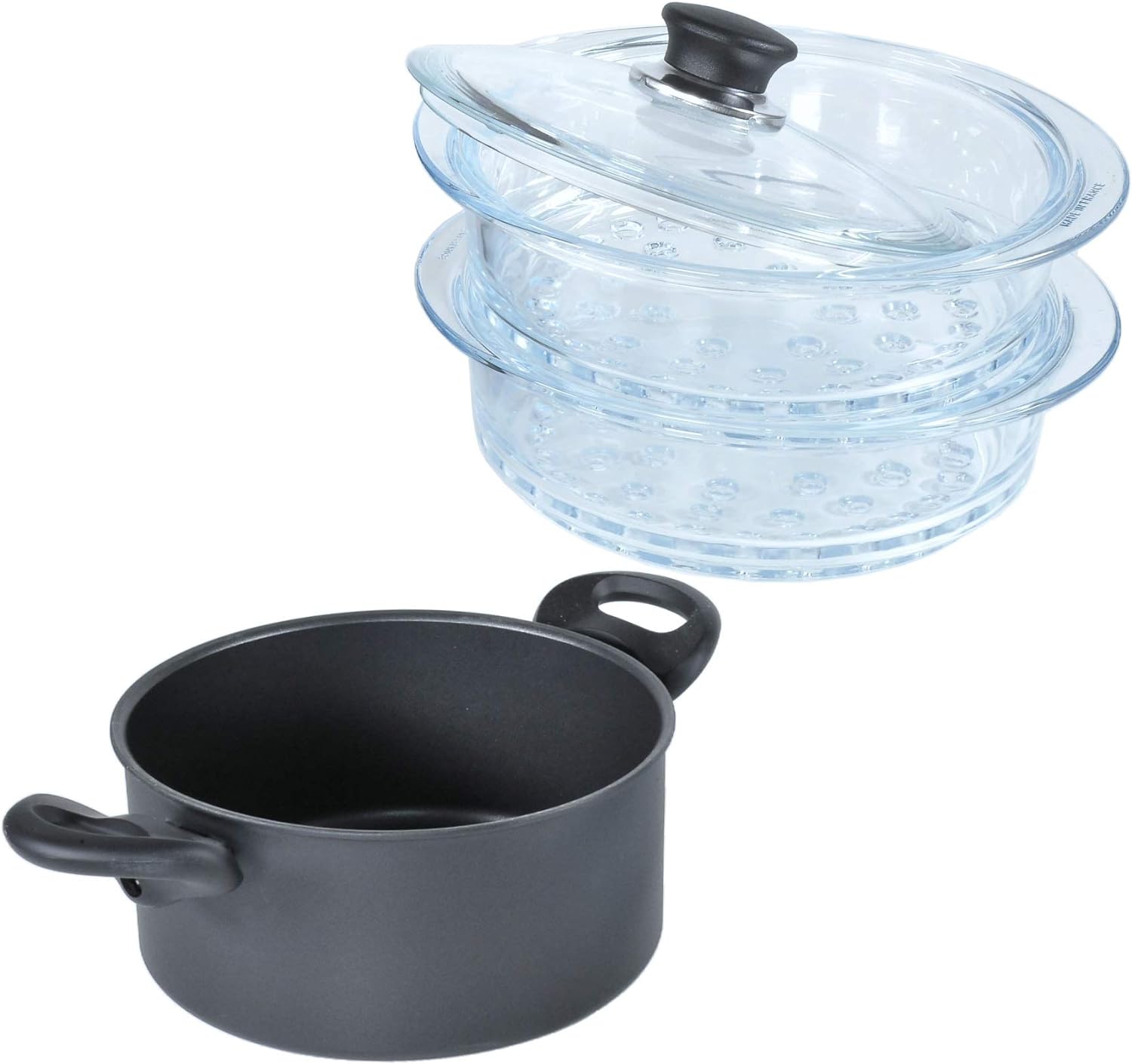 - Aluminium-Topf mit zwei Glaseinsätzen