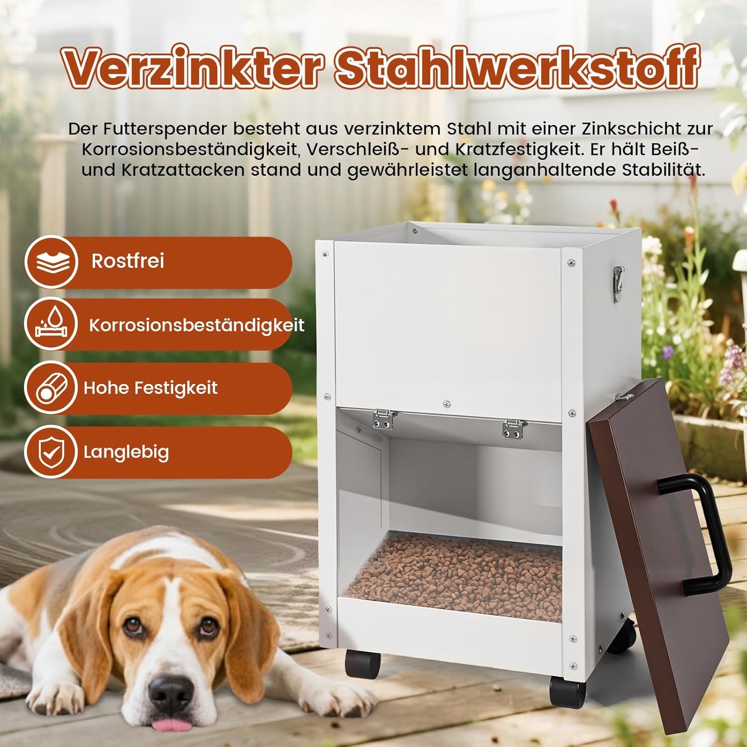 - Transparente Acrylplatte: Die transparente Tür dieses supergrossen automatischen Hundefutterautomaten ermöglicht es nicht nur Tieren, leicht Futter zu finden, sondern gewährleistet auch einen geräuschlosen Futterungsprozess und verhindert effektiv