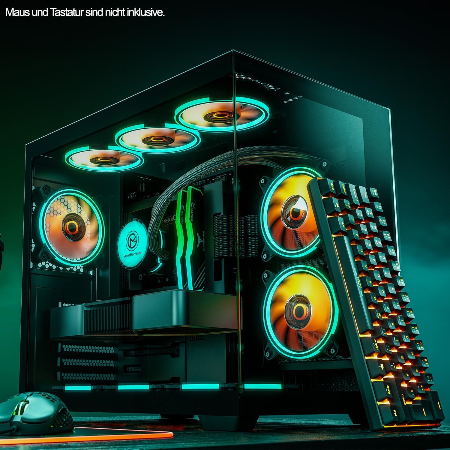 - Um die Leistung auch optisch zu würdigen, finden alle Komponenten ihr Zuhause im unserem coolen Cube Gehäuse und einer 240mm Wasserkühlung.