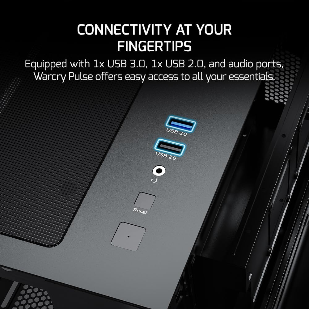 • Stilvolles Design: Das GAMEPOWER Warcry Pulse Gehäuse im Aquarium-Stil mit gehärtetem Glas bietet ein modernes, durchsichtiges Design.