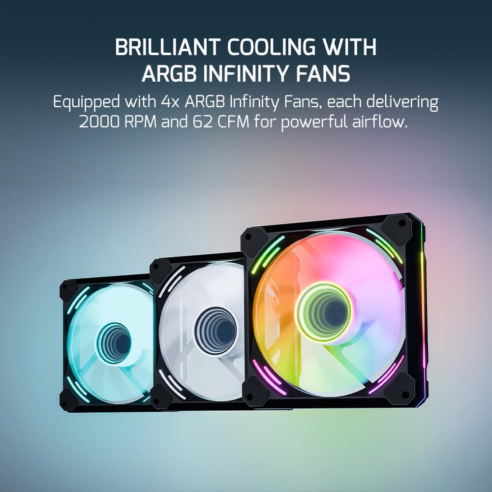 • Optimierte Belüftung: Enthält 4 PWM ARGB-Lüfter für effiziente Kühlung und atemberaubende RGB-Beleuchtung.