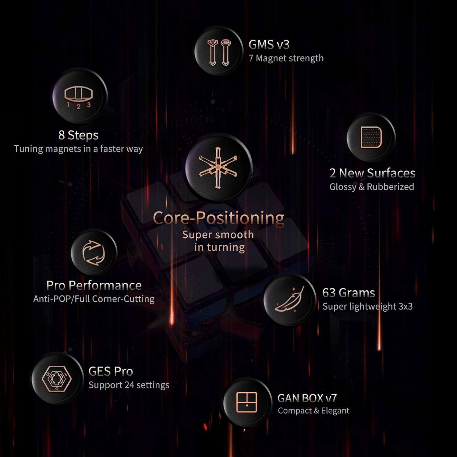 - INNOVATIVER MAGNETISCHER KERN - Die Zeit ist reif für ein magnetisches Kernpositionierungssystem! Beim GAN 11 M Pro Speedcube besitzt der neue GAN-Kern Magneten, deren Gegenstücke sich an den Ecken befinden. Wenn der Cube gedreht wird, liegt die